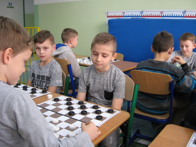 26 stycznia br. uczniowie klas I – III wzięli udział w pierwszym etapie eliminacji do Mistrzostw Powiatu w Warcabach. Do drugiej tury awansowało dziewięciu uczniów z klas pierwszych, sześciu z drugich i jedenastu z trzecich.Życzymy powodzenia w dalszych rozgrywkach.