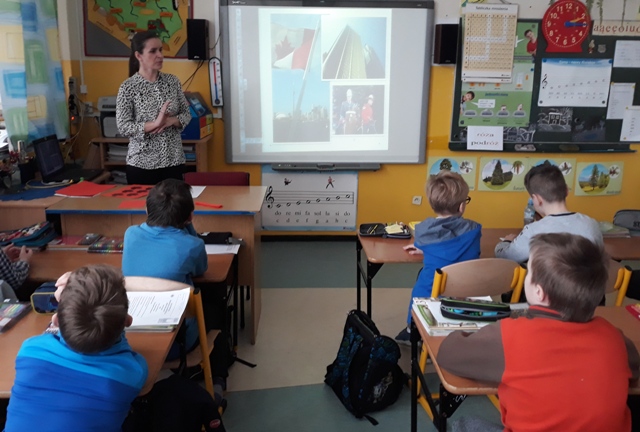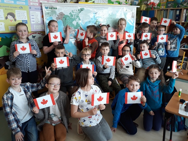 Wczoraj, z okazji pierwszego dnia wiosny, gościliśmy mamę kolegi z klasy – panią Małgorzatę Lech, która poprowadziła zajęcia o Kanadzie, w której mieszkała ponad trzy lata. Zajęcia były realizowane zgodnie z programem nauczania, w ramach działu o Ameryce Północnej. Pani Lech w pasjonujący i atrakcyjny sposób przybliżyła uczniom ten piękny, drugi co do wielkości kraj na naszym globie. Dzieci z zapartym tchem słuchały wykładu, oglądały prezentację, a szczerze zainteresowane tematem, zadawały wiele pytań. Po części teoretycznej pani Małgorzata zaplanowała zajęcia plastyczne. Trzecioklasiści wykonywali flagę Kanady. To był wyjątkowy dzień.