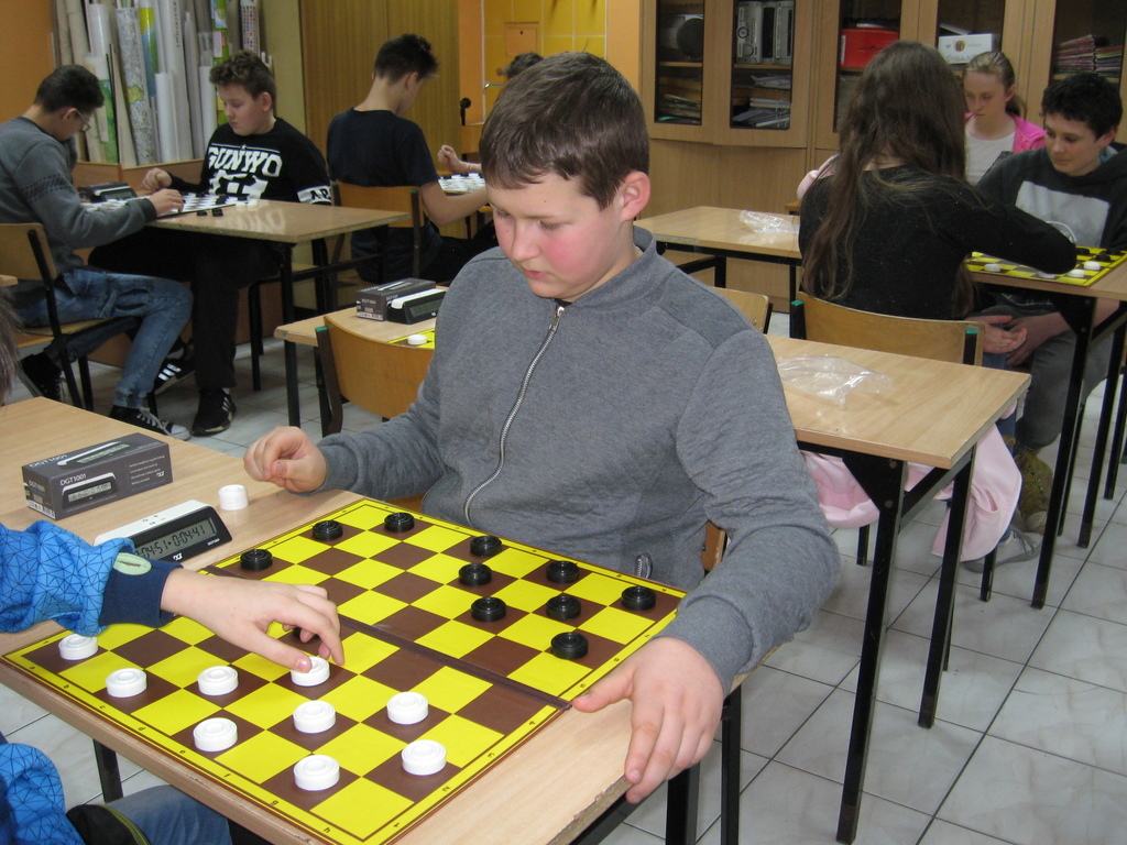 16 marca br. odbył się szkolny turniej warcabowy klas VII. Wzięło w nim udział osiemnastu uczniów. Zawody były rozgrywane systemem szwajcarskim na dystansie 7 rund.