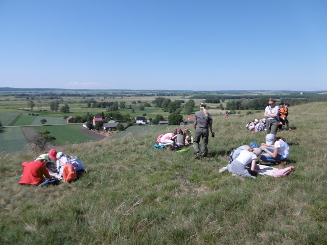 W dniu 29 maja 2018 r. dwudziestoosobowa grupa uczniów z klas IV, V, VII wraz z opiekunami p. Ewą Ćwiek, p. Anetą Rogalą uczestniczyła w zajęciach terenowych, które odbyły się w Krzyżanowicach Średnich – rezerwacie roślinności kserotermicznej. W siedzibie Zespołu Nadnidziańskich i Świętokrzyskich Parków Krajobrazowych uczniowie spotkali się z pracownikiem parków, skąd razem wyruszyli na zajęcia terenowe do pobliskiego rezerwatu przyrody. Wyposażeni w sprzęt do obserwacji przyrody taki jak: lupy, lornetki, pudełka do obserwacji owadów rozpoznawali florę i faunę wzgórza w Krzyżanowicach. Pracę ułatwiały przewodniki do oznaczania roślin i zwierząt. Dodatkowo uczniowie zostali zapoznani z położeniem geograficznym rezerwatu przyrody. Zaopatrzeni w kompasy i mapy, w grupach wyznaczali kierunki geograficzne oraz orientowali mapy. Z wielkim zainteresowaniem wysłuchali informacji przekazanych przez panią Magdę, która była przewodnikiem wycieczki. Nasze spotkanie z przyrodą zakończyło się wspólnym ogniskiem i pieczeniem kiełbasek na terenie siedziby Zarządu ŚiNPK w Krzyżanowicach Średnich.