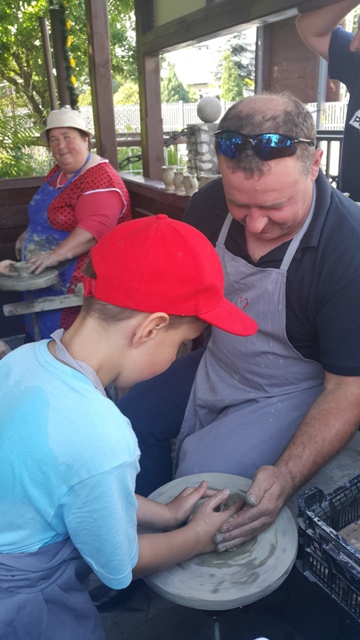 W sobotę, 9 czerwca br. wybraliśmy się wraz z rodzicami i wychowawczynią na wycieczkę integracyjną. Najpierw zwiedziliśmy Ośrodek Garncarstwa w Chałupkach, po którym oprowadzał nas potomek garncarzy z Chałupek – pan Józef Głuszek. Następnie wzięliśmy udział w warsztatach garncarskich, gdzie pod kierunkiem mistrzyni garncarskiego rzemiosła spróbowaliśmy własnych możliwości na kole garncarskim, tocząc z gliny dzbanuszki, filiżankii miseczki. Na koniec udaliśmy się do „Leśnego Zacisza” w Lisowie. Spacerując alejkami mini zoo, podziwialiśmy z bliska żyjące tam zwierzęta. Po pysznym posiłku przygotowanym przez naszych rodziców przyszedł czas na plac zabaw. To była wspaniała wycieczka.