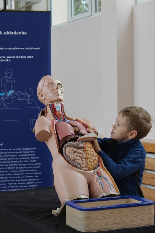 Mobilna wystawa składała się z 20 interaktywnych eksponatów, które można było dotknąć i przetestować. Poprzez samodzielne eksperymentowanie poznaliśmy kilka zjawisk przyrodniczych , a edukatorzy z Centrum Nauki Kopernik dodatkowo objaśniali działanie eksponatów , pomogli zrozumieć zjawiska z dziedziny fizyki, biologii i matematyki. Popularnością cieszyły się takie eksponaty jak: kula plazmowa, silny jak serce, łamigłówki oraz wirujące krzesło. Dla odwiedzających przygotowany został także skoroszyt „Poradnik młodego naukowca” – zawierający propozycje doświadczeń, które mogą samodzielnie przeprowadzić w domu.