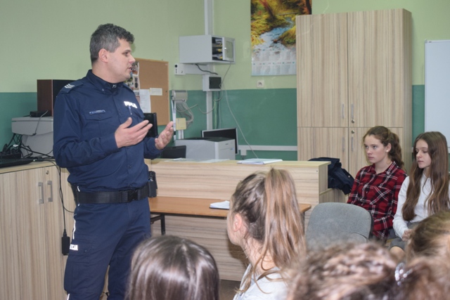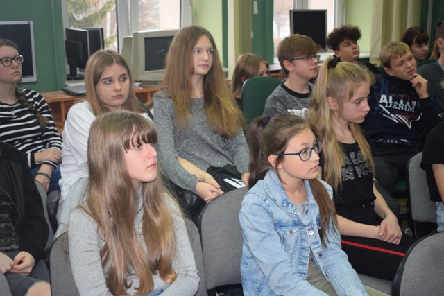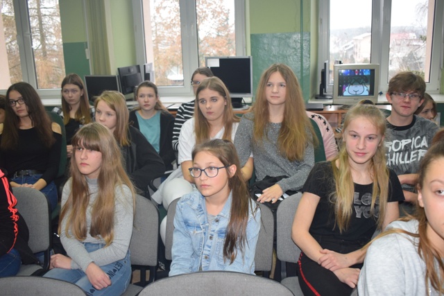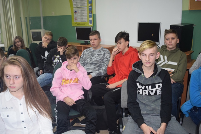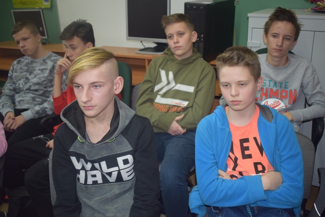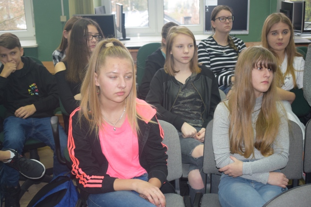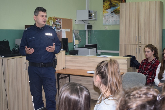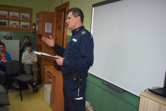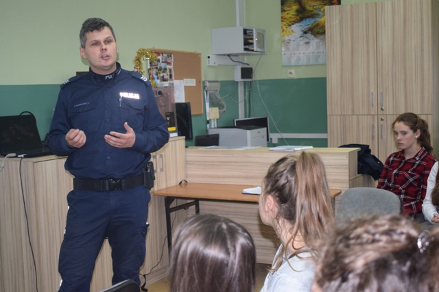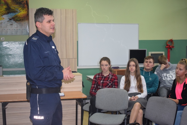 W ramach VIII edycji projektu "Szybuj bezpiecznie w internetowej chmurze 2018", odbyło się w naszej szkole spotkanie z dzielnicowym Posterunku Policji w Chmielniku Mariuszem Pawłowskim. Funkcjonariusz przybliżył uczniom zagadnienia związane z mądrym i bezpiecznym korzystaniem z zasobów Internetu oraz uświadomił konsekwencje prawne w przypadku ich nieprzestrzegania. Prelekcję poprzedziły lekcje przeprowadzone przez nauczycieli informatyki, podczas których były rozwijane kompetencje cyfrowe uczniów oraz bezpieczne i odpowiedzialne korzystanie z zasobów dostępnych w sieci. Organizatorami tegorocznej edycji projektu jest Urząd Marszałkowski Województwa Świętokrzyskiego, ŚCDN w Kielcach i Komenda Wojewódzka w Kielcach. Uczniowie uczestniczący w prelekcji wzięli również udział w konkursie multimedialnym „Razem dla lepszego Internetu”. Uczestnikom życzymy powodzenia.
