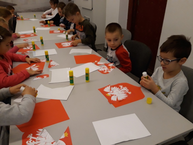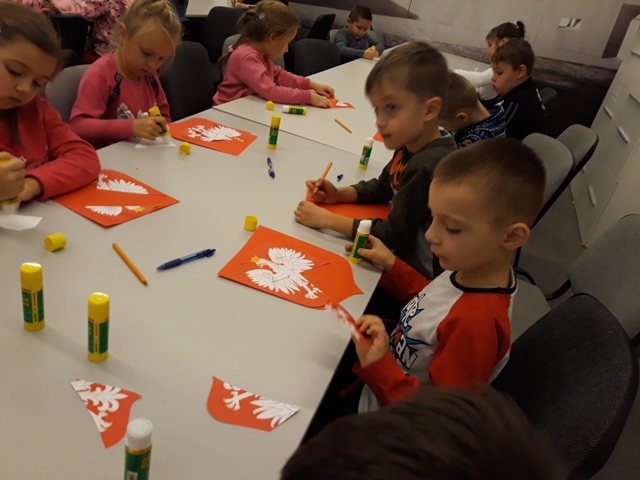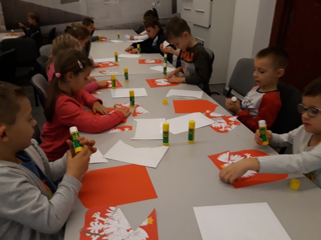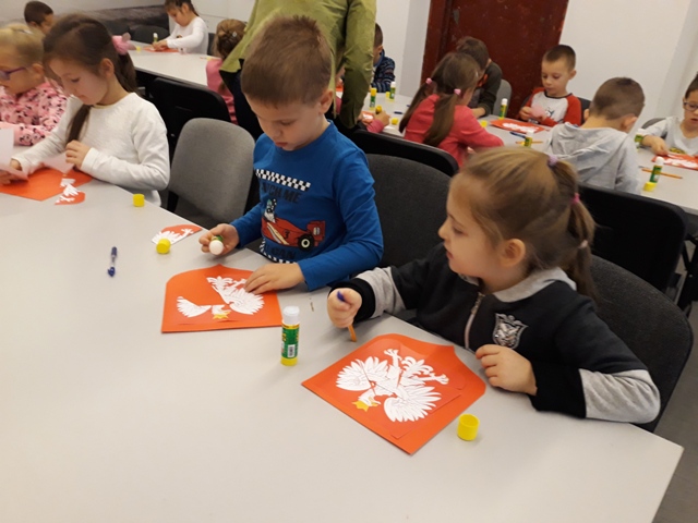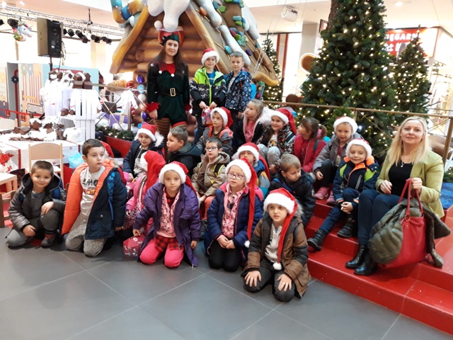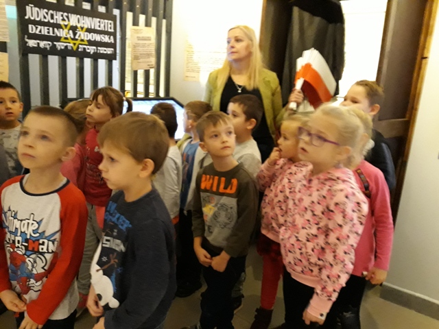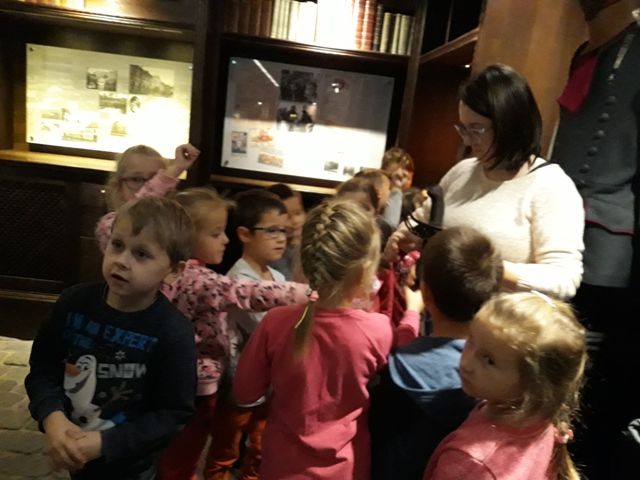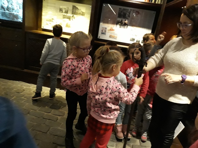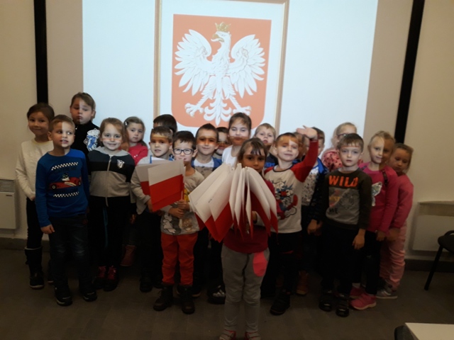 Dzieci z oddziałów przedszkolnych pod opieką swoich nauczycieli wybrały się w grudniu na wycieczkę do Kielc. Z okazji 100-lecia odzyskania niepodległości przez Polskę zwiedziły OMPiO Wzgórze Zamkowe, zobaczyły aktualną wystawę i eksponaty zgromadzone w muzeum. Z uwagą słuchały pani przewodnik i były ciekawe, jak wyglądało dawne więzienie. Po zejściu do podziemi nie kryły zdziwienia. Zainteresowaniem cieszyły się warsztaty historyczne, gdzie po wysłuchaniu legendy o powstaniu państwa polskiego i obejrzeniu prezentacji multimedialnej na temat wizerunku godła na przestrzeni wieków samodzielnie wykonały godło oraz flagę Polski. Po warsztatach dzieci poczuły się głodne, stąd „obowiązkowy zestaw w McDonald’s”, następnie film w kinie Helios. Przed wejściem do sali kinowej na film pt. „Miśków 2-óch w Nowym Jorku” dzieciaki miały okazję podziwiać piękne dekoracje i wystawy świąteczne, zrobić pamiątkowe zdjęcia przy choince i domku z piernikami oraz spotkać się z Mikołajem.