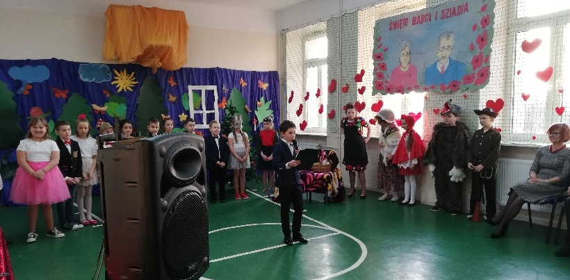 15.02.2019 r. klasa 3b przygotowała spotkanie z okazji Dnia Babci i Dziadka. Na tę uroczystość przybyli nasi kochani dziadkowie oraz pani dyrektor Renata Nowak i pani wicedyrektor Anna Olesińska. Uczniowie pięknie zaprezentowali się w przedstawieniu pt. ,,Czerwony Kapturek”, recytowali wiersze oraz śpiewali piosenki dla zebranych gości. Po przedstawieniu wręczyli im samodzielnie wykonane prezenty i zaprosili na słodki poczęstunek. Występy bardzo się podobały, a uczniowie usłyszeli od gości wiele ciepłych słów i pochwał. Babcie i Dziadkowie z wielką dumą słuchali swoich wnuków, a niektórym ze wzruszenia łezka zakręciła się w oku.