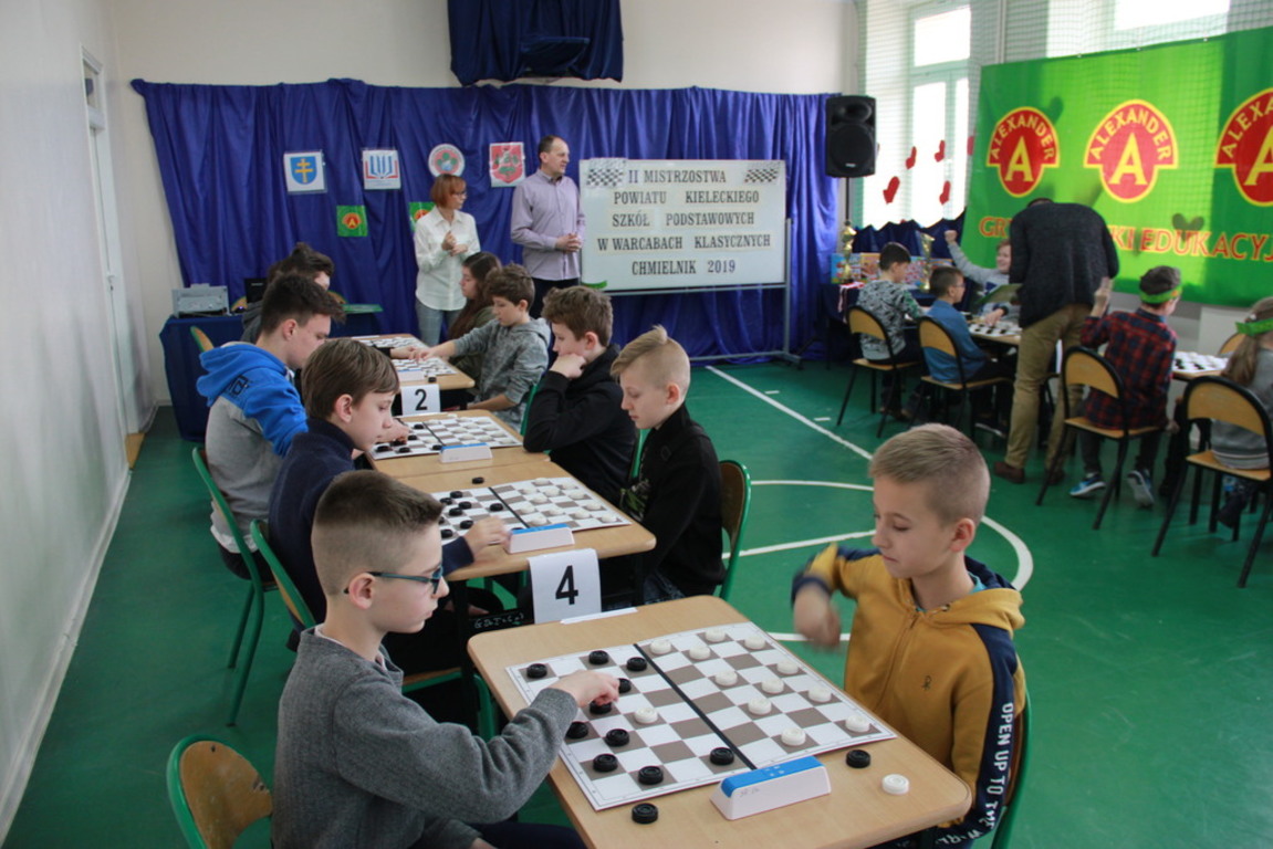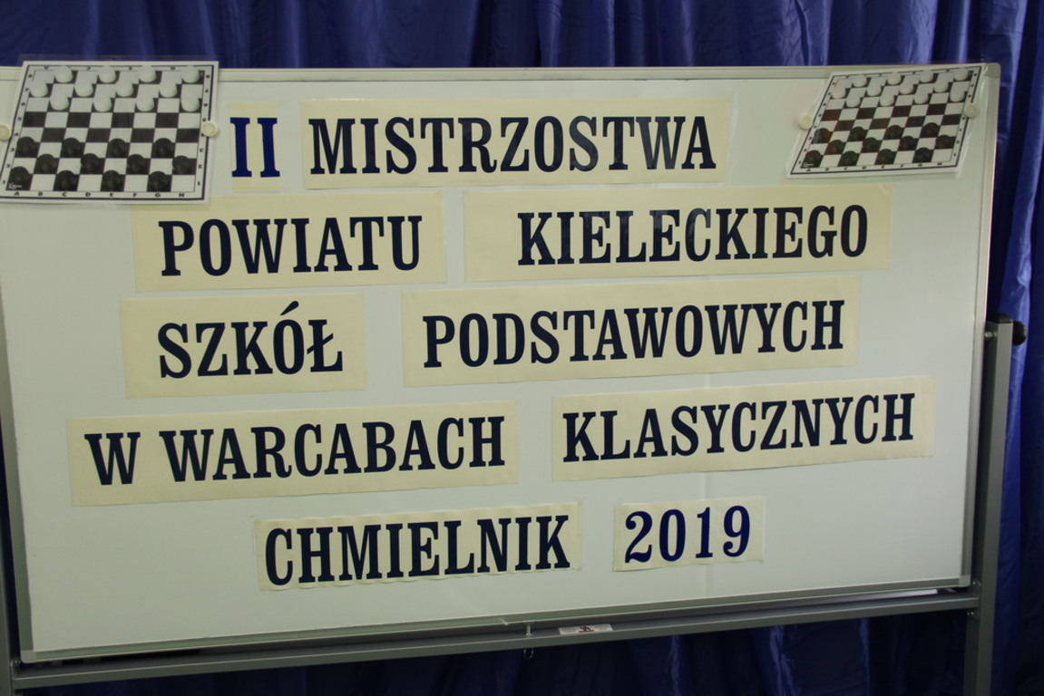 23 lutego 2019 r. w naszej Szkole odbyły się II Mistrzostwa Powiatu Kieleckiego Szkół Podstawowych w Warcabach Klasycznych pod honorowym patronatem Świętokrzyskiego Kuratora Oświaty, Starosty Kieleckiego i Burmistrza MiG Chmielnik. Zawody były rozgrywane systemem szwajcarskim na dystansie siedmiu rund w dwóch kategoriach wiekowych: klasy I – IV i klasy V – VIII.