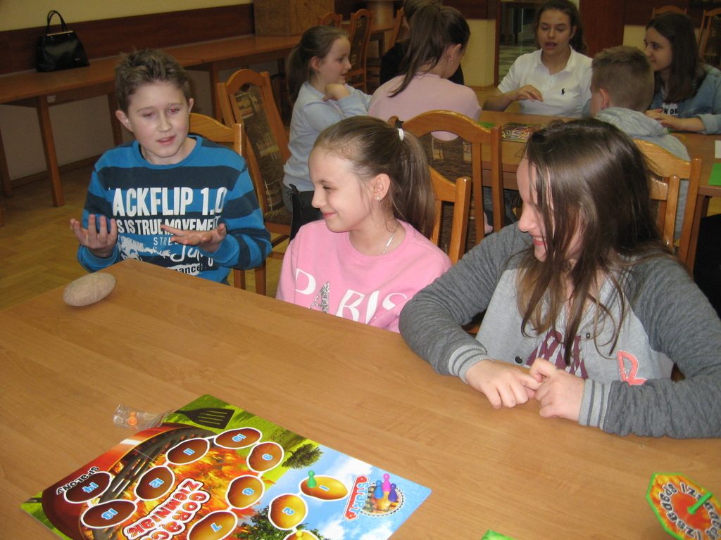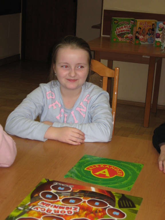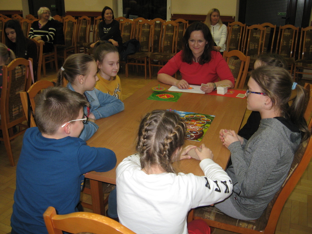 „Gorący ziemniak” to emocjonująca planszówka, w której gracze rywalizują, odpowiadając na pozornie proste pytania. Turniej był rozgrywany w sześcioosobowych grupach na dystansie czterech rund. Nad jego prawidłowym przebiegiem czuwali sędziowie: Magdalena Grabka, Kamila Musiał, Renata Nowak, Edyta Wesołowska i Sławomir Grabka.
