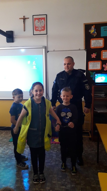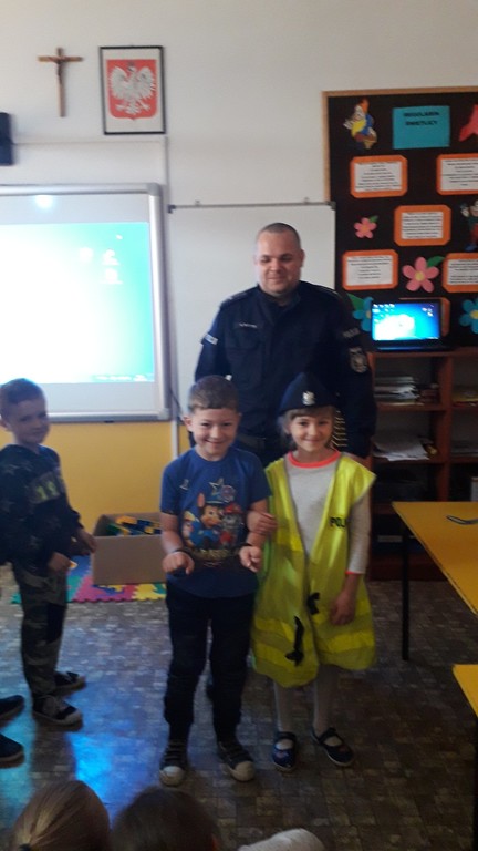 W poniedziałek 20 maja br. w Szkole Filialnej w Suchowoli odbyło się spotkanie uczniów z policjantem - panem Karolem Mostkiem. Tematem spotkania było przede wszystkim bezpieczeństwo. Pan policjant rozmawiał z dziećmi o bezpiecznym poruszaniu się po ulicach. Szczegółowo omówił zasady bezpiecznej drogi do i ze szkoły.Przzypomniał również o korzyściach wynikających z noszenia elementów odblaskowych przy ubraniu bądź tornistrze. Dzieci dowiedziały się, jak reagować i wzywać pomoc w sytuacjach zagrożenia do których należą m.in. rozmowy z obcymi. Dzieci chętnie słuchały rad, brały udział w rozmowie.