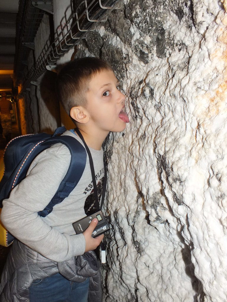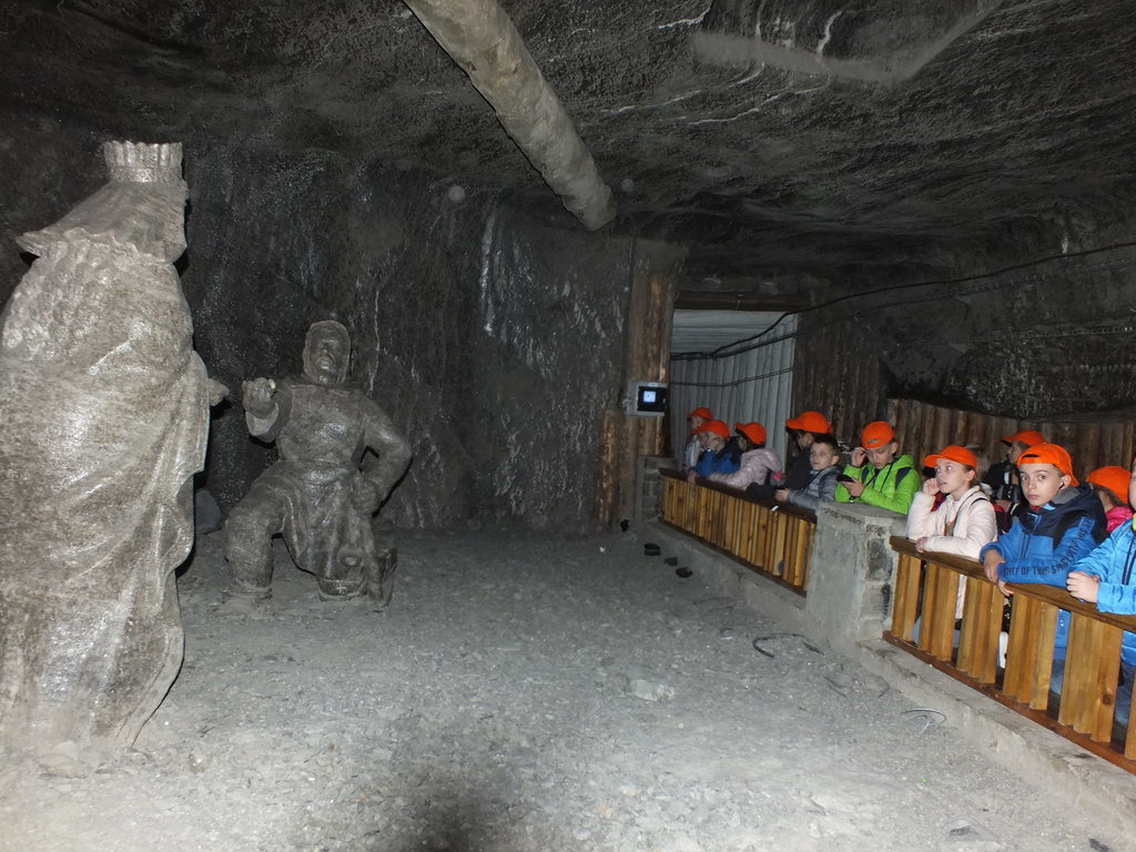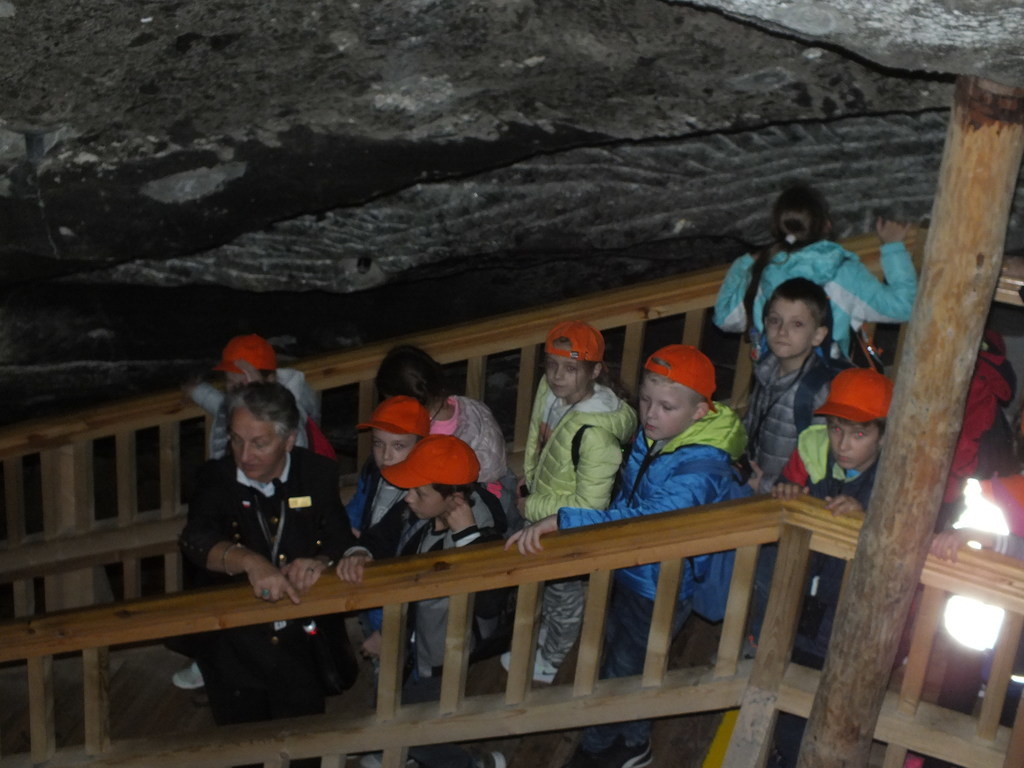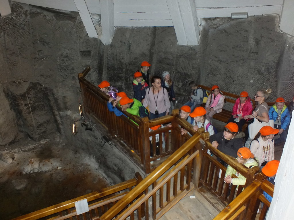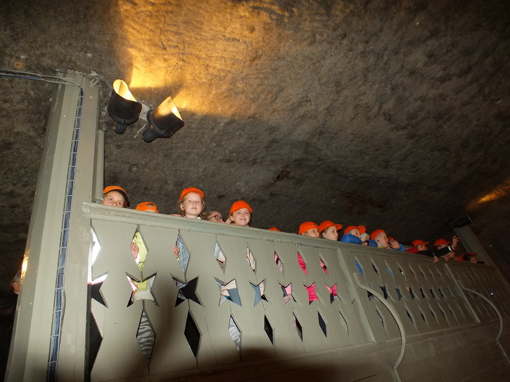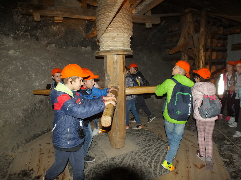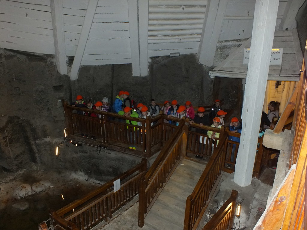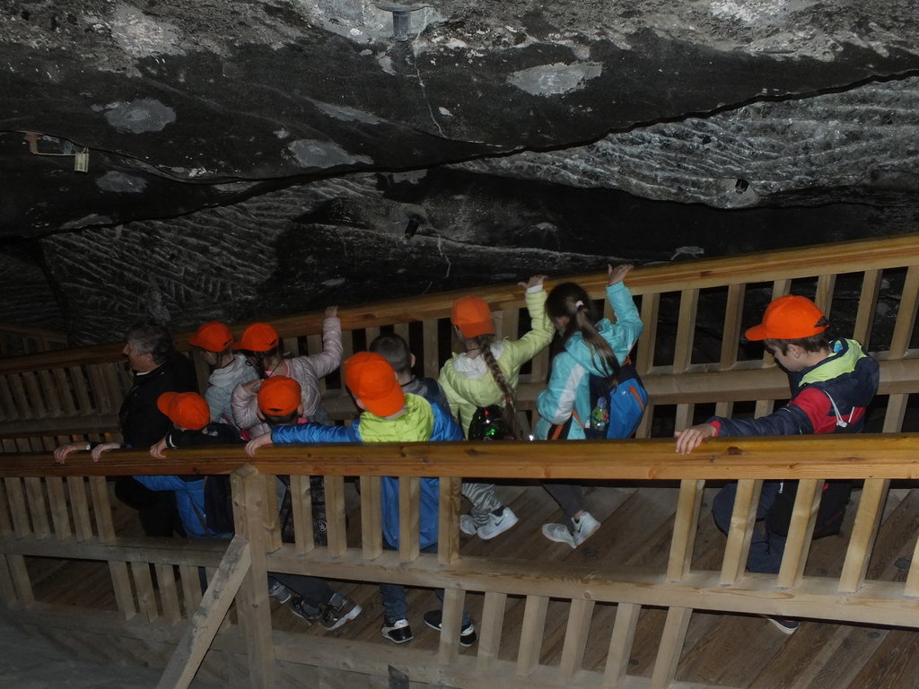 24 października uczniowie klasy 3a wybrali się na wycieczkę do niezwykłej Kopalni Soli w Wieliczce. Przed wejściem na podziemną trasę turystyczną mieliśmy chwilę czasu na zakup pamiątek. Przed rozpoczęciem zwiedzania dostaliśmy indywidualny zestaw nagłaśniający, aby lepiej słyszeć przewodnika. Pierwszym wyzwaniem było zejście po schodach, których było… 800, z czego na starcie już 380. Gdy zeszliśmy na głębokość 135 metrów, zrobiło się dość zimno, podczas gdy na zewnątrz panowała piękna, jesienna pogoda. Zabawną atrakcją, przez całą trasę, była możliwość sprawdzania, czy ściany są rzeczywiście z soli. W kopalni usłyszeliśmy m.in. legendę o św. Kindze, ale przede wszystkim zobaczyliśmy niesamowite wnętrza z rzeźbami wykutymi w soli, wspaniałe kaplice, urokliwe podziemne jeziorka, oryginalne urządzenia i sprzęt, a także ślady prac górniczych, które dały maluchom wyobrażenie o zmaganiach ludzi z żywiołem, ich pracy, wierzeniach. Zwiedzanie zakończyliśmy przepysznym posiłkiem w restauracji ,,Smakuj pod ziemią”. Pobyt w kopalni okazał się niezwykłą przygodą, interesującą lekcją oraz świetną zabawą.