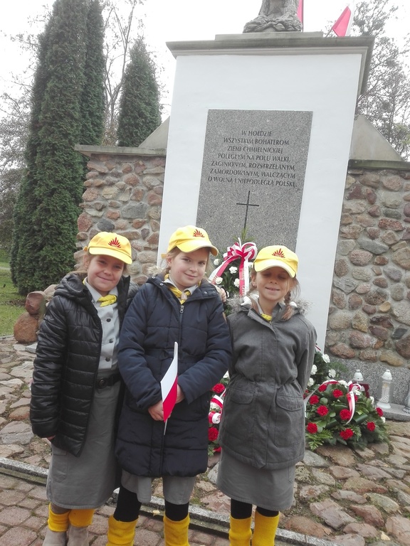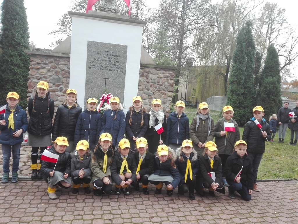W dniu 11 listopada w Święto Niepodległości zuchy i harcerze naszej szkoły uczestniczyli w uroczystej mszy świętej w intencji Ojczyzny. Po nabożeństwie przemaszerowali ulicami Chmielnika, kierując się do parku Niepodległości, gdzie pod pomnikiem Wdzięczności Dyrekcja naszej szkoły z delegacją zuchów i harcerzy złożyła wiązankę kwiatów i zapaliła znicz. W ten sposób uczczono Święto Niepodległości i pamięć poległych żołnierzy.