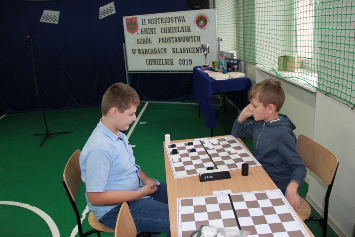 16 listopada br. w naszej Szkole odbyły się II Mistrzostwa Gminy Chmielnik Szkół Podstawowych w Warcabach Klasycznych w kategorii klas I – IV. Organizatorem zawodów była Szkoła Podstawowa im. Stefana Żeromskiego w Chmielniku i Klub Gier Planszowych HEX. Otwarcia turnieju dokonali p. Renata Nowak Dyrektor Szkoły i p. Paweł Wójcik Burmistrz MiG Chmielnik.