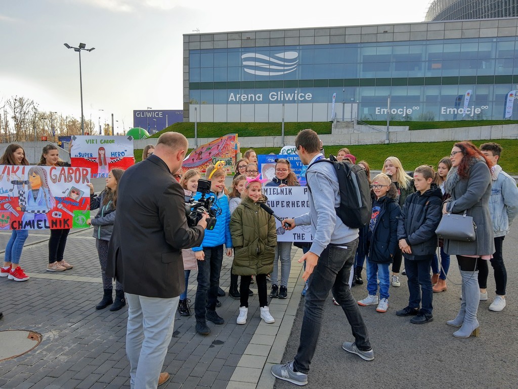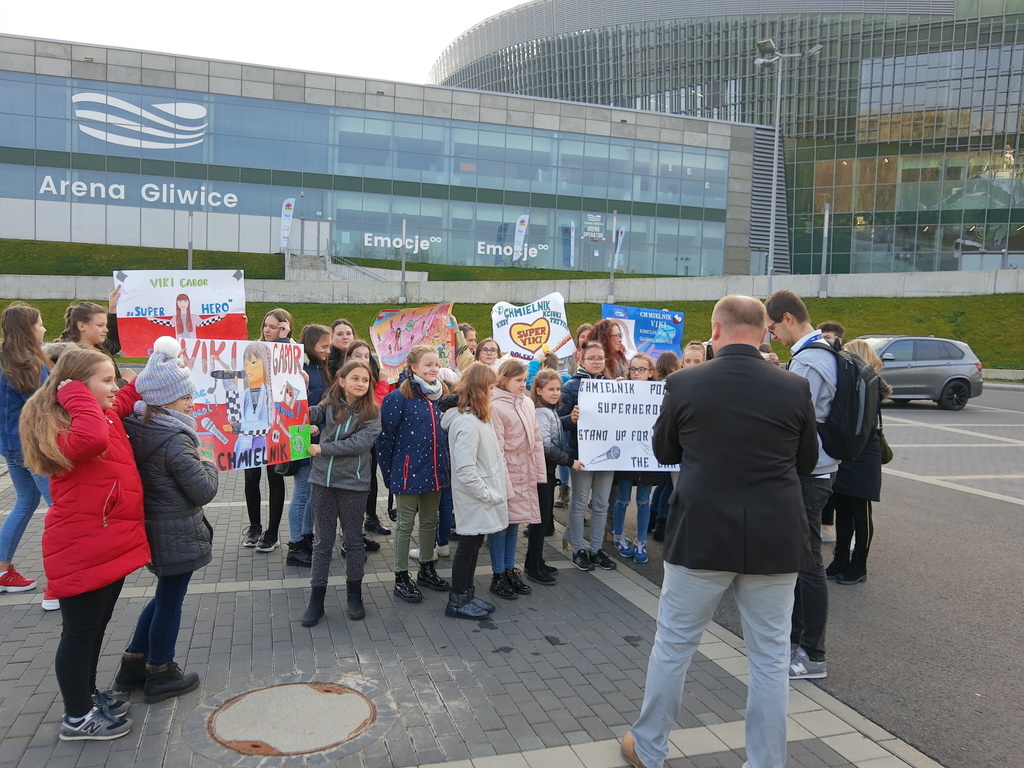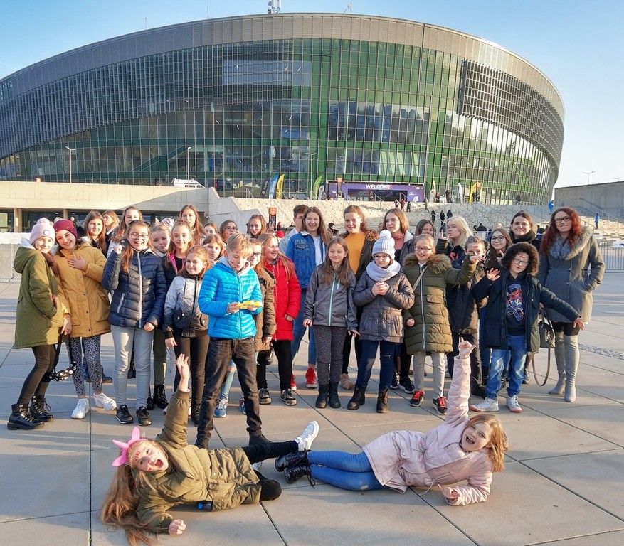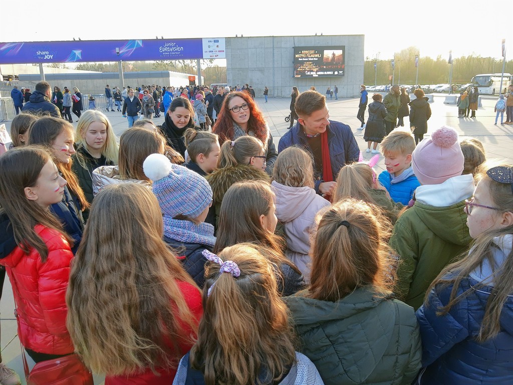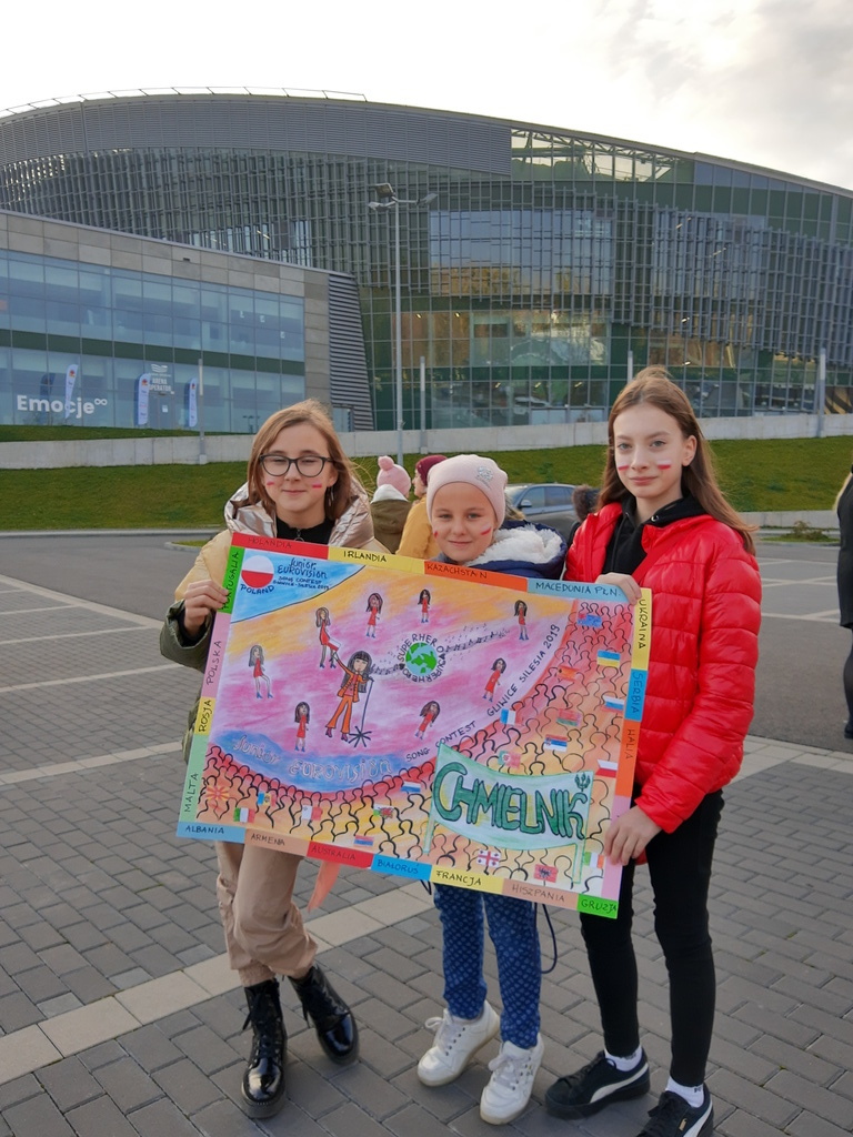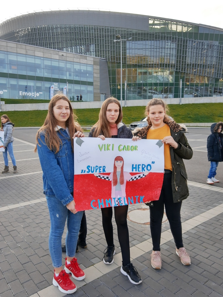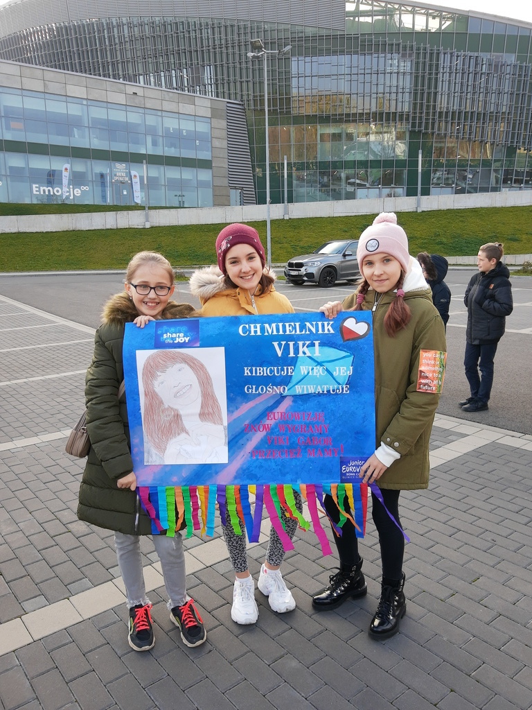 Hurrra! Polska reprezentantka Viki Gabor wygrała tegoroczną Eurowizję Junior 2019! A my widzieliśmy to na żywo. W niedzielę 24 listopada grupa dzieci z Chmielnika uczestniczyła w finałowym koncercie Eurowizji w Gliwickiej Arenie. Wśród nich było dziewięciu uczniów naszej szkoły, zwycięzców konkursu plastycznego na najładniejszy transparent. Emocje były ogromne. Nasza grupa stanowiła mocne wsparcie dla naszej reprezentantki. Kolorowe transparenty, które z dumą trzymaliśmy, zostały zauważone przez lokalną telewizję oraz radio jeszcze przed wejściem do Areny. Sam koncert przyniósł jeszcze więcej emocji i pozytywnej energii, które udzieliły się wszystkim. Przebywając w strefie Fan Zone, mieliśmy scenę i artystów na wyciągnięcie ręki. Byliśmy pod wrażeniem organizacji imprezy, przepięknej sceny oraz efektów świetlnych. Szaleństwo sięgnęło zenitu, gdy okazało się, że podobnie jak w roku ubiegłym, Polska jest na pierwszym miejscu. Radości nie było końca. To były niezapomniane przeżycia, które na długo pozostaną w naszej pamięci. Dziękujemy panu Tadeuszowi Wesołowskiemu, prezesowi Fundacji Radan, dzięki któremu mieliśmy możliwość udziału w tym wspaniałym, międzynarodowym wydarzeniu.