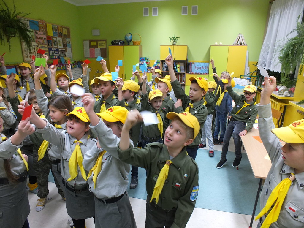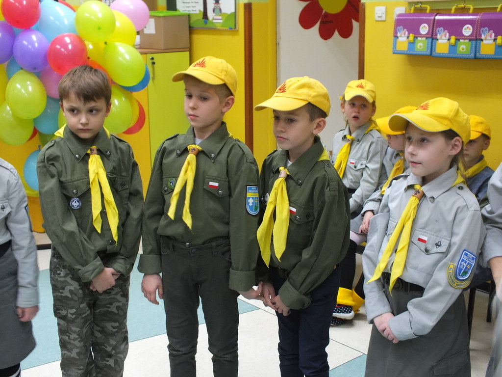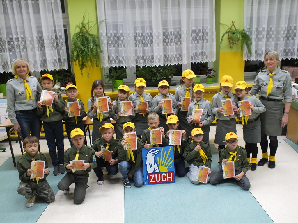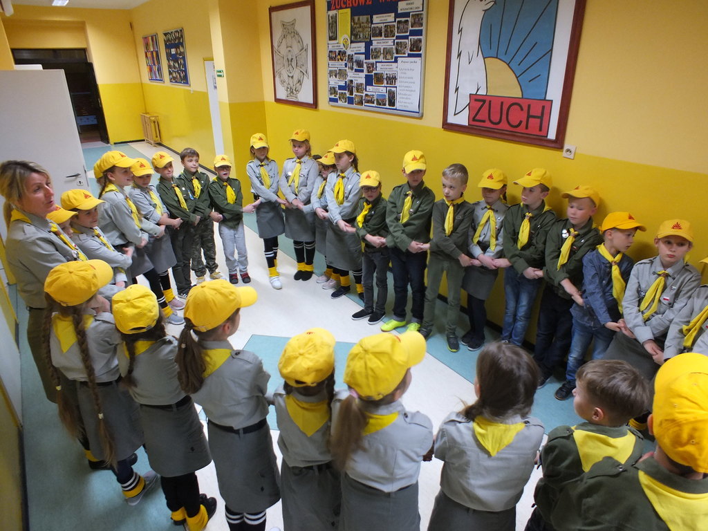 Andrzejki to wyjątkowa okazja do dobrej zabawy w gronie przyjaciół. Nasza 80. gromada zuchowa „Przyjaciele Puchatka”, pod opieką druhny B. Todorowskiej, przybocznej U. Wilczyńskiej i pani K. Furman, uczestniczyła 29.11.2019 r. w andrzejkach zuchowych zorganizowanych w naszej szkole. Każdy zuch miał możliwość poznania swojej wróżby na bliższą i dalszą przyszłość. Nieodzownym elementem andrzejek jest lanie wosku, którego i u nas nie zabrakło. Grupa zuchów złożyła również obietnicę zuchową. Był też poczęstunek i słodkości. Wszyscy wspaniale się bawili, humory dopisywały, a przepowiedziana przyszłość zawsze może się spełnić. Tak naprawdę wszystko zależy od nas samych. Warto o tym pamiętać. Iskierka przyjaźni puszczona w krąg zakończyła zabawę.