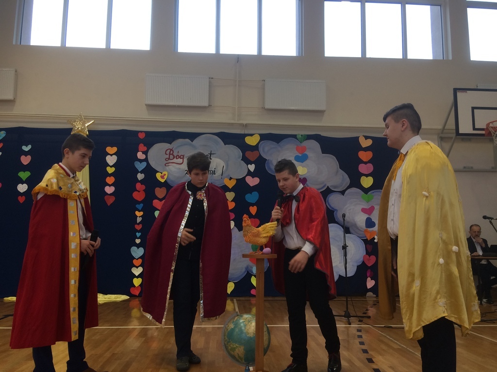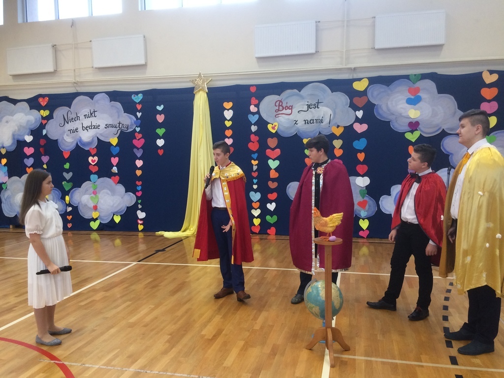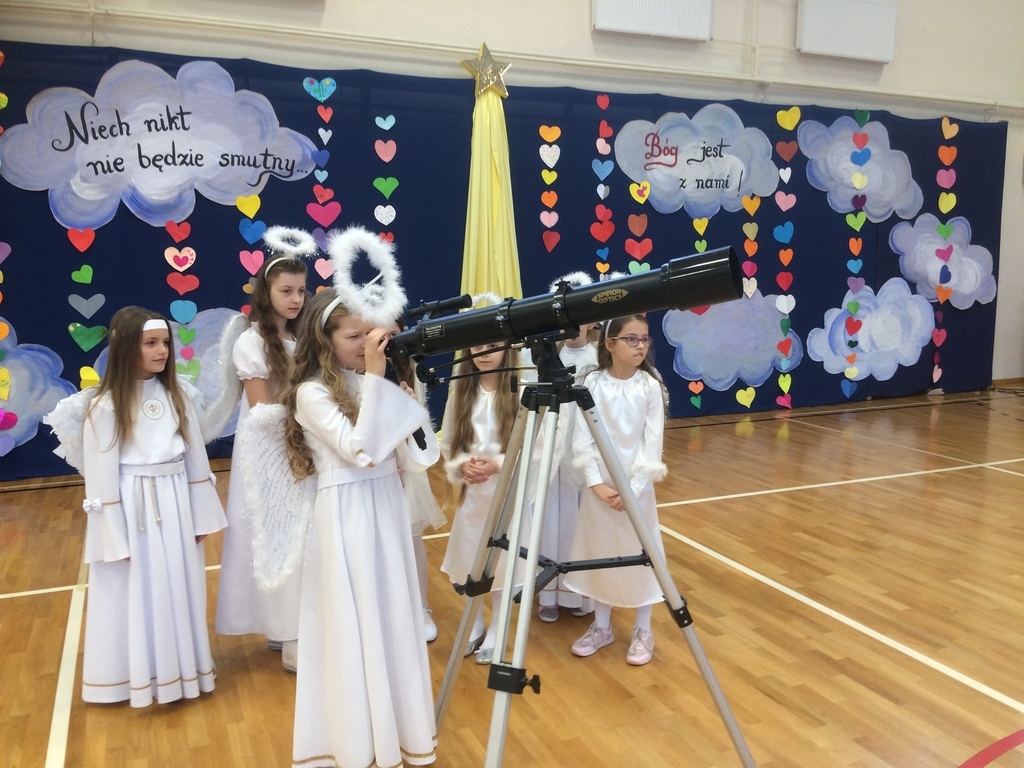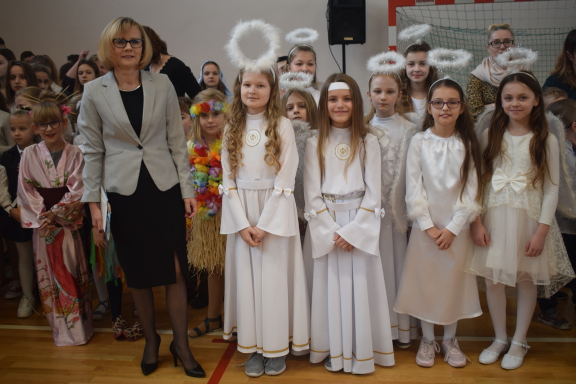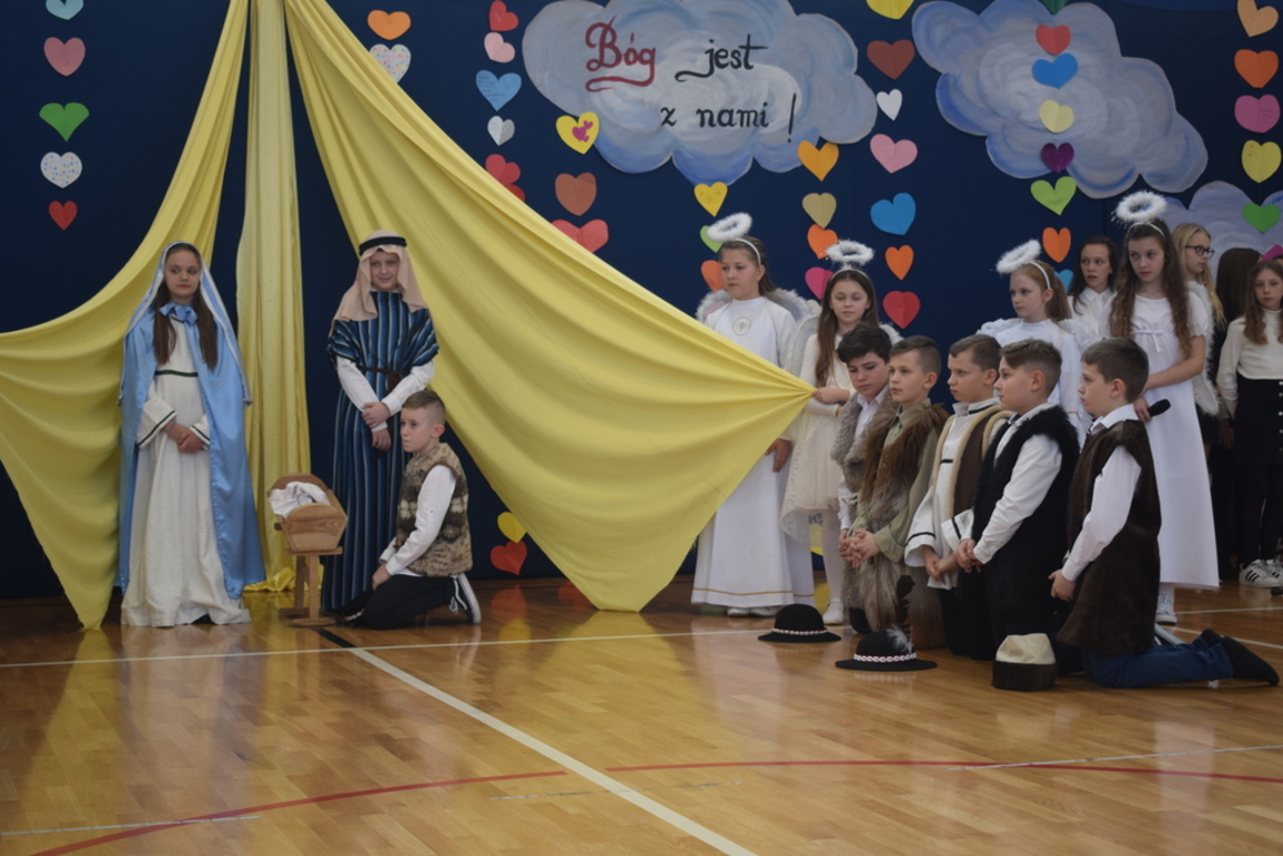 Na głębsze przeżywanie Tajemnicy Bożego Narodzenia przygotowały nas szkolne Jasełka, które odbyły się 20 grudnia w sali gimnastycznej. Główne przesłanie scenariusza to pobudzenie widza do radości wynikającej z prawdy, że Bóg jest między nami, tak by zechciał przybyć do Narodzonego. Do tego było potrzebnych wielu aniołów. Ich role odegrały uczennice z różnych klas, a najmłodsze 6-latki wykonały przecudny anielski taniec. Warto podkreślić, że wykonawcami Jasełek byli uczniowie naszych katechetek: s. Gracjany, s. Damarii, s. Konstancji i p. Marzeny Kaszy. Podczas przedstawienia uczniowie zaprezentowali talenty nie tylko aktorskie i teatralne, ale również wokalne, muzyczne i taneczne. Co ciekawe, do dekoracji zostały użyte kolorowe serca, które dzieci każdego dnia przynosiły do kościoła na Roraty. Całość Jasełek nie byłaby możliwa i tak efektowna, gdyby nie pomoc Rodziców i wielu nauczycieli. Podziękowania należą się: