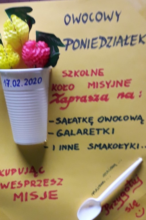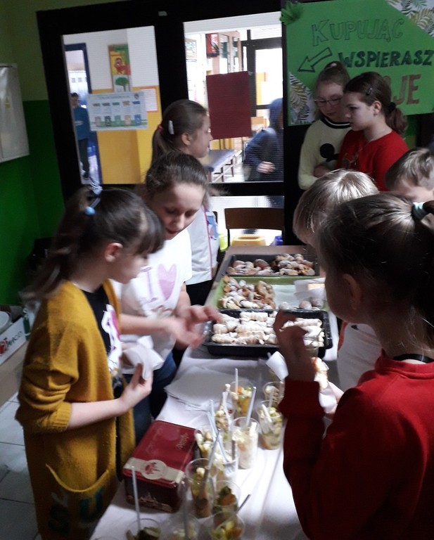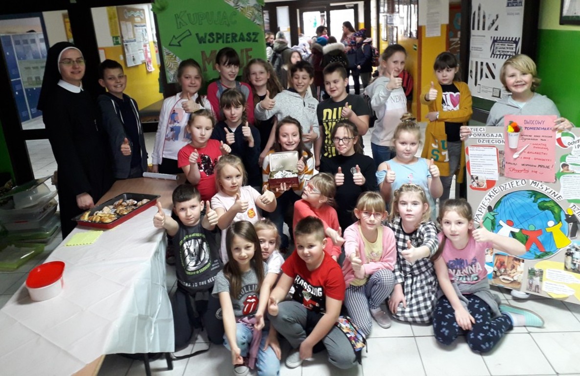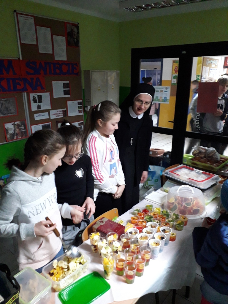 17 lutego br. nasza szkoła znów pięknie przyczyniła się do kolejnej akcji misyjnej, a dokładnie budowy szkoły w Burundi. Dzieci ze Szkolnego Ogniska Misyjnego wraz z rodzicami przygotowały dużo pyszności. Było zdrowo, słodko, smacznie i kolorowo. Nic dziwnego, że smakołyki sprzedawane przez Małych Misjonarzy Jezusa szybko znikały. Bardzo dziękujemy wszystkim, którzy w ten sposób wsparli Misje. Ogromne podziękowania należą się mamom, babciom i dzieciom z Ogniska Misyjnego za ofiarność, szczodrość i trud, jaki włożyły, aby przygotować te wszystkie smakołyki. Pamiętajmy, że dobro zawsze wraca. Dobrze jest, gdy potrafimy dzielić się z innymi.