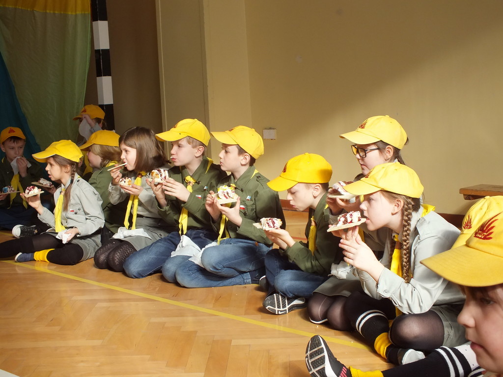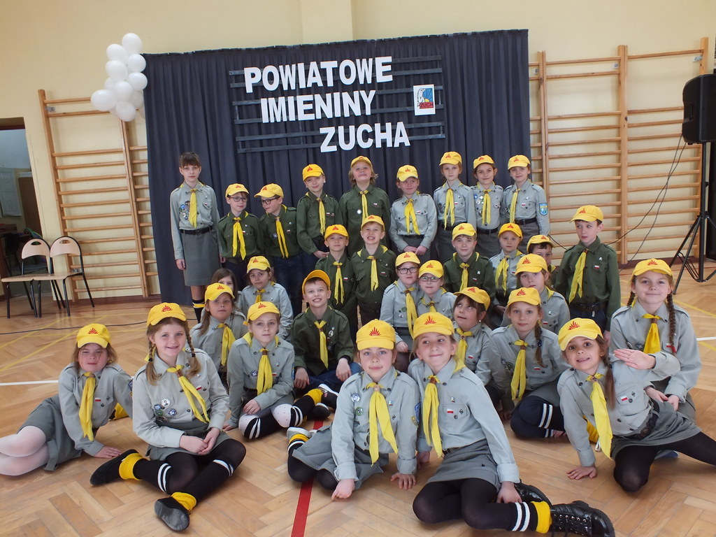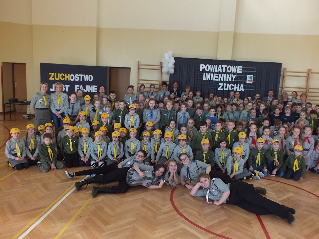 29 lutego – co cztery lata – obchodzimy imieniny ZUCHA. Z tej okazji w Szkole Podstawowej w Pierzchnicy spotkały się zuchy z terenu powiatu kieleckiego. Były gromady z: Bęczkowa, Daleszyc, Marzysza, Masłowa, Nowin, Oblęgorka, Sukowa, Tumlina, Pierzchnicy oraz zuchy z 80. Gromady Zuchowej z naszej szkoły. Zaczęło się oczywiście od imieninowego tortu! Zgromadzonych powitał Piotr Makuch, dyrektor szkoły, a życzenia wszystkim zuchom złożyła phm. Olga Zawodnik-Purtak, komendantka Hufca Kielce – Powiat. Wśród zaproszonych gości był Stanisław Strąk – burmistrz Pierzchnicy, Michał Malinowski – dyrektor Muzeum Bajki, Baśni i Opowieści z Warszawy, sponsorzy i przyjaciele szkoły. Następnie nadszedł czas na zajęcia, warsztaty, gry i zabawy. Podzielone na kilka grup zuchy brały udział w prowadzonych przez Michała Malinowskiego zajęciach, podczas których słuchały mądrych historii i wykonywały autorskie drewniane modele. Natomiast pod okiem drużynowych przygotowały plakaty i kartki imieninowe dla zuchów z innych gromad oraz sprawdziły swoją sprawność podczas baśniowego turnieju. To był bardzo wesoły dzień!