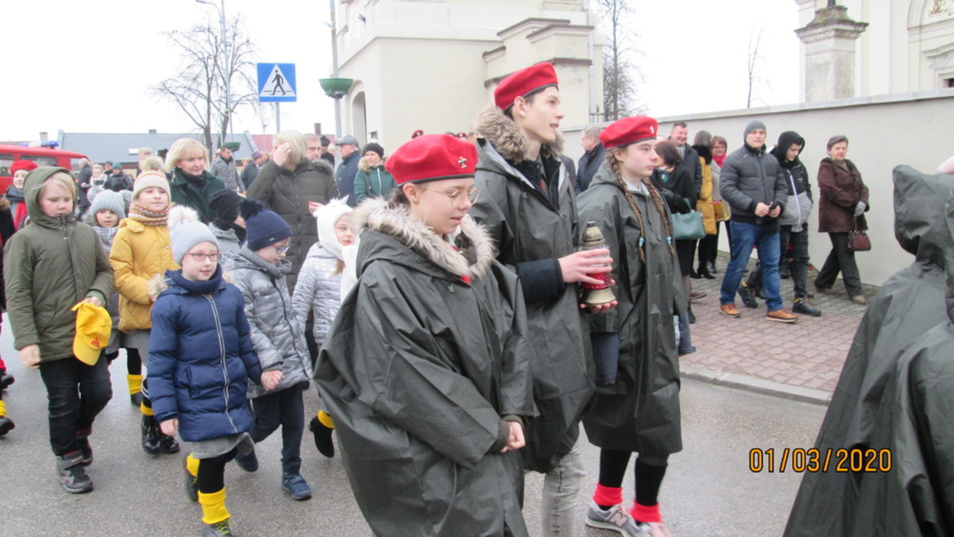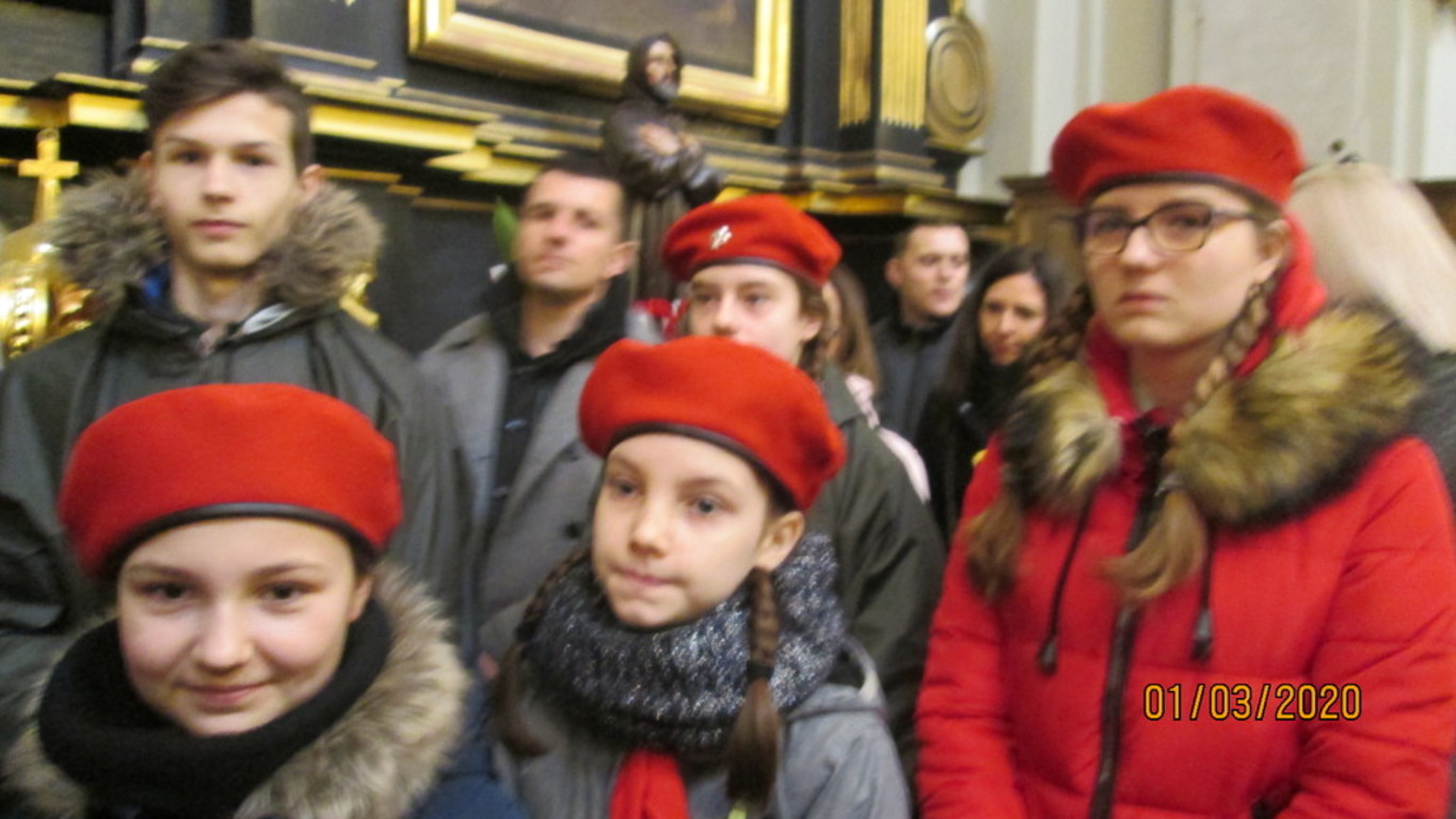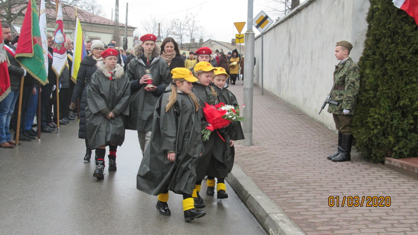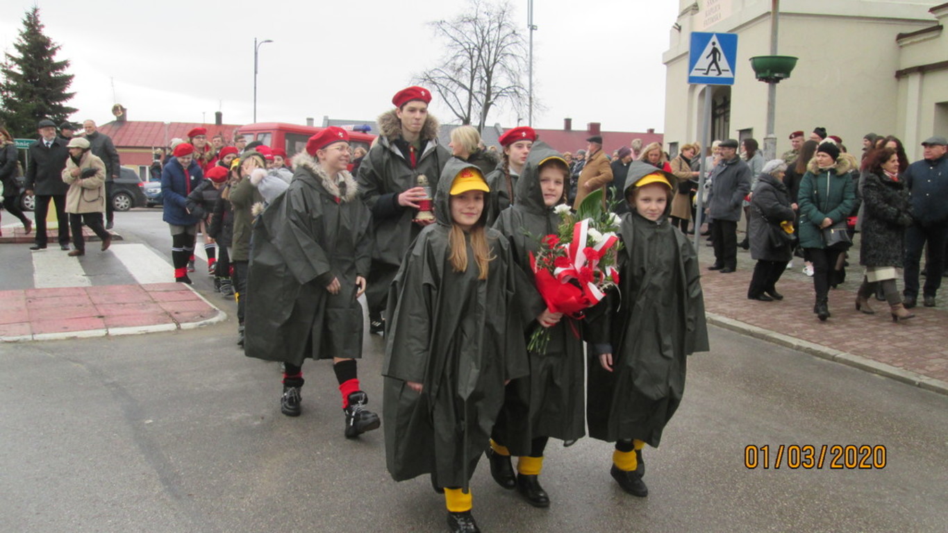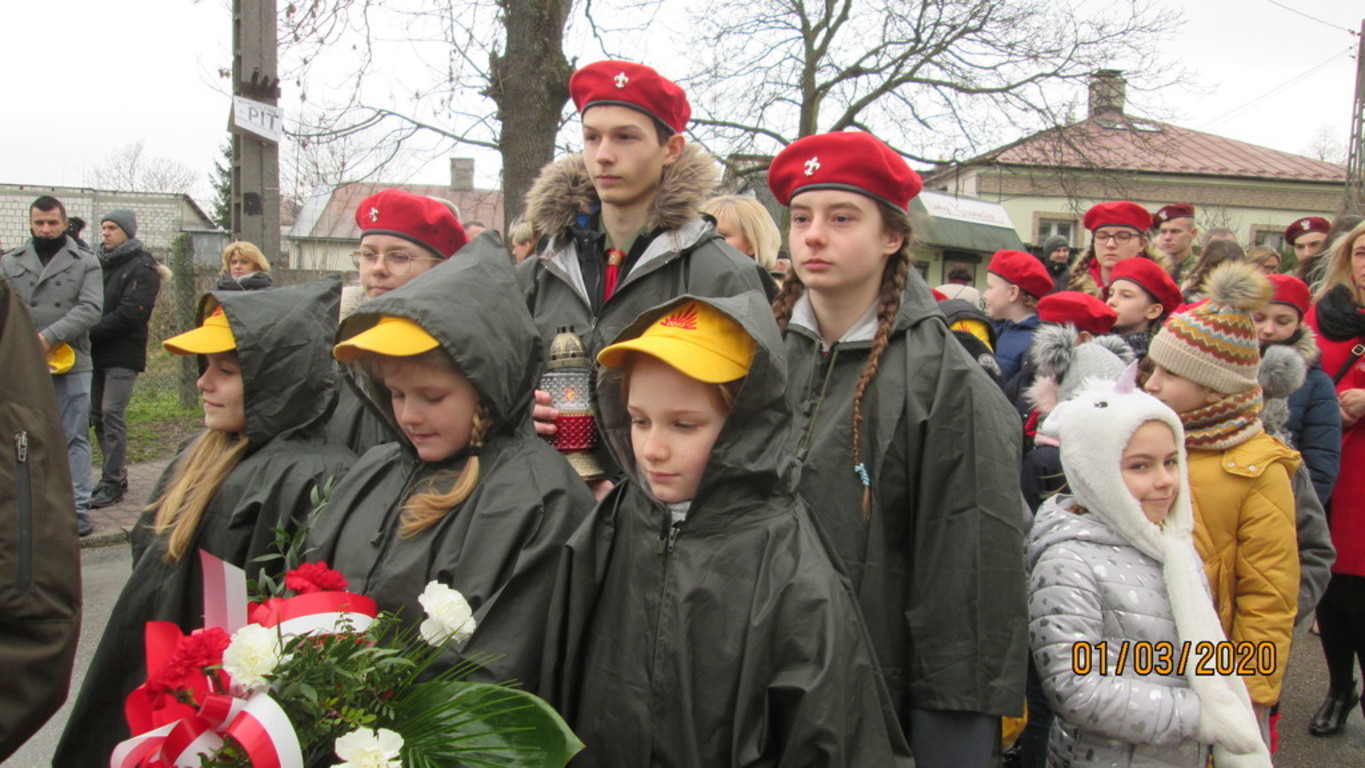 1 marca br. zuchy i harcerze z naszej szkoły uczestniczyli w uroczystej mszy świętej odprawionej w kościele parafialnym w Chmielniku, gdzie rozpoczęły się gminne obchody Narodowego Dnia Żołnierzy Wyklętych. Po mszy świętej uczestnicy przemaszerowali pod Mur Polskich Patriotów, gdzie pod tablicą dedykowaną Pamięci Żołnierzy Wyklętych Dyrektor naszej szkoły Renata Nowak oraz wicedyrektor Justyna Zamojska wraz z zuchami i harcerzami złożyli znicz i wiązankę kwiatów.