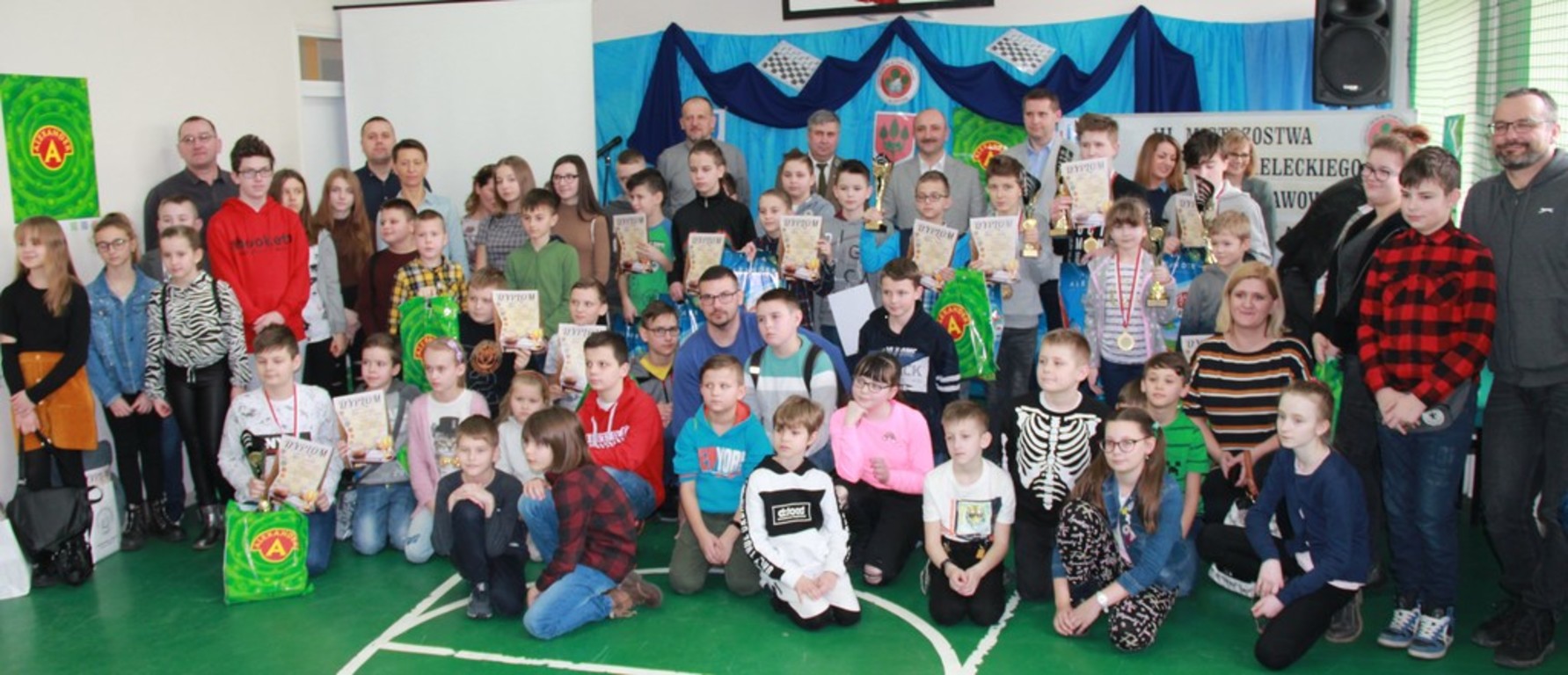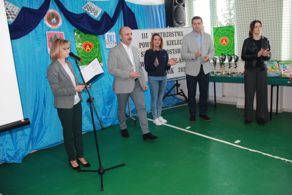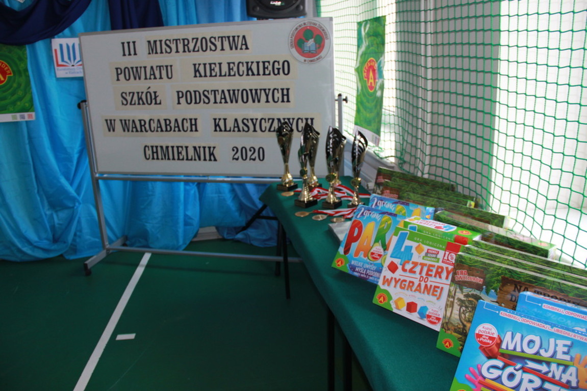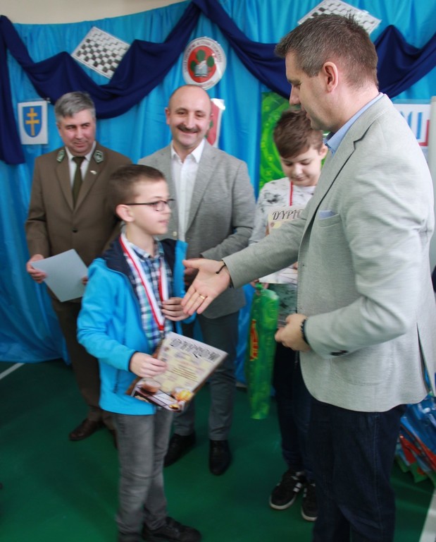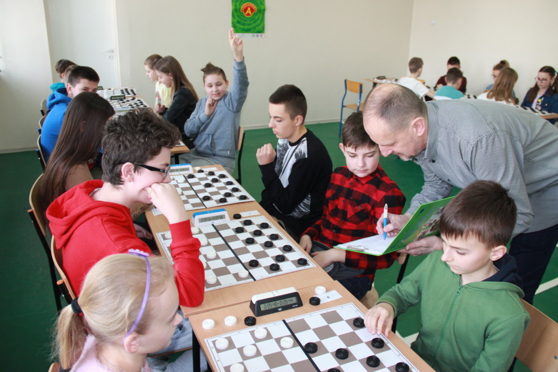 29 lutego br. w naszej Szkole odbyły się III Mistrzostwa Powiatu Kieleckiego Szkół Podstawowych w Warcabach Klasycznych. Głównym organizatorem imprezy był działający przy szkole Klub Gier Planszowych HEX, a patronatem objęli ją Kurator Świętokrzyski, Starosta Kielecki, Burmistrz MiG Chmielnik oraz Radio Kielce. W rozgrywkach wzięło udział ponad pięćdziesięciu uczniów z ośmiu szkół Powiatu Kieleckiego. Zawody zostały przeprowadzone w dwóch kategoriach wiekowych, systemem szwajcarskim na dystansie siedmiu rund.