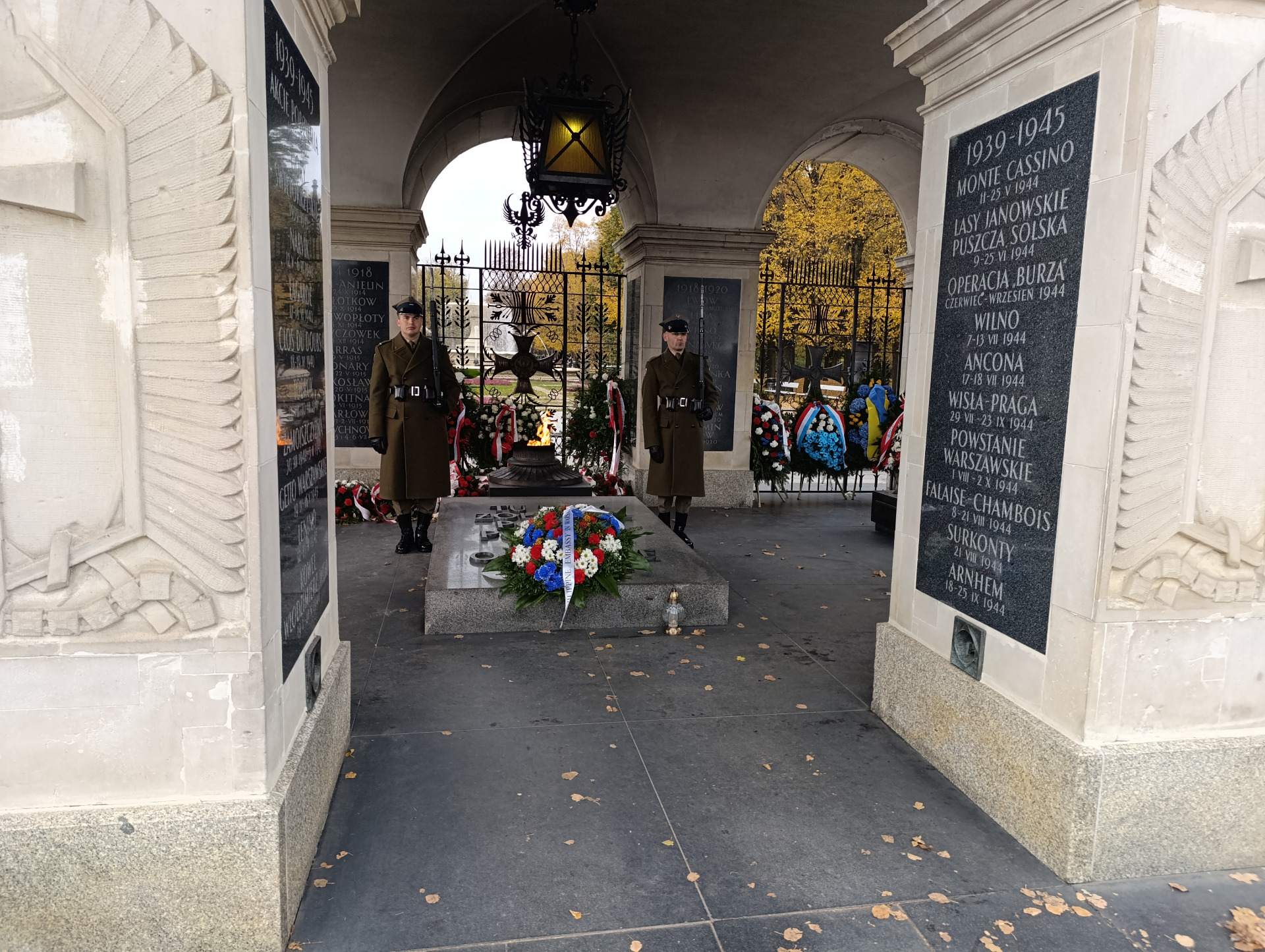 Wyjechaliśmy wcześnie rano, o godzinie 5.50, podróż upłynęła nam szybko i bezproblemowo . Zwiedzanie Warszawy rozpoczęliśmy od wjazdu windą na 30. piętro Pałacu Kultury i Nauki, skąd podziwialiśmy panoramę całego miasta. Pogoda dopisała i widok zapierał dech w piersiach. Następnie spotkaliśmy się z panią przewodnik i wspólnie udaliśmy się do centrum miasta. Spacerkiem przeszliśmy przez Ogród Saski i dotarliśmy do Grobu Nieznanego Żołnierza, akurat trafiliśmy na uroczystą zmianę warty. Pani przewodnik zabrała nas w historyczną podróż przez wieki, i w skupieniu wysłuchaliśmy opowieści o bezimiennych bohaterach pochowanych w mogile. W chwili zadumy oddaliśmy hołd naszym nieznanym żołnierzom.