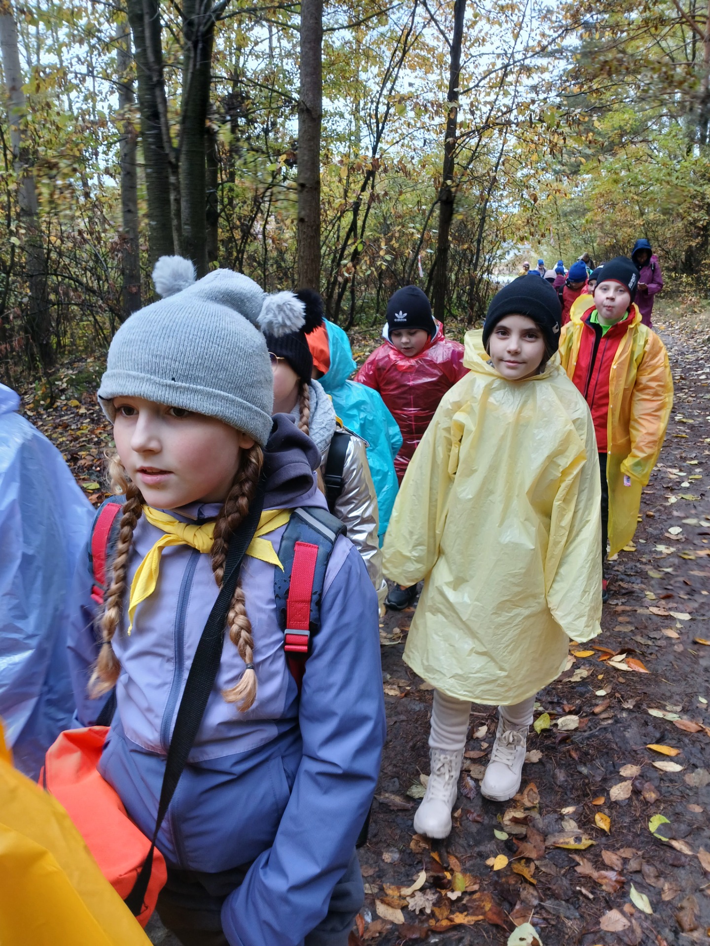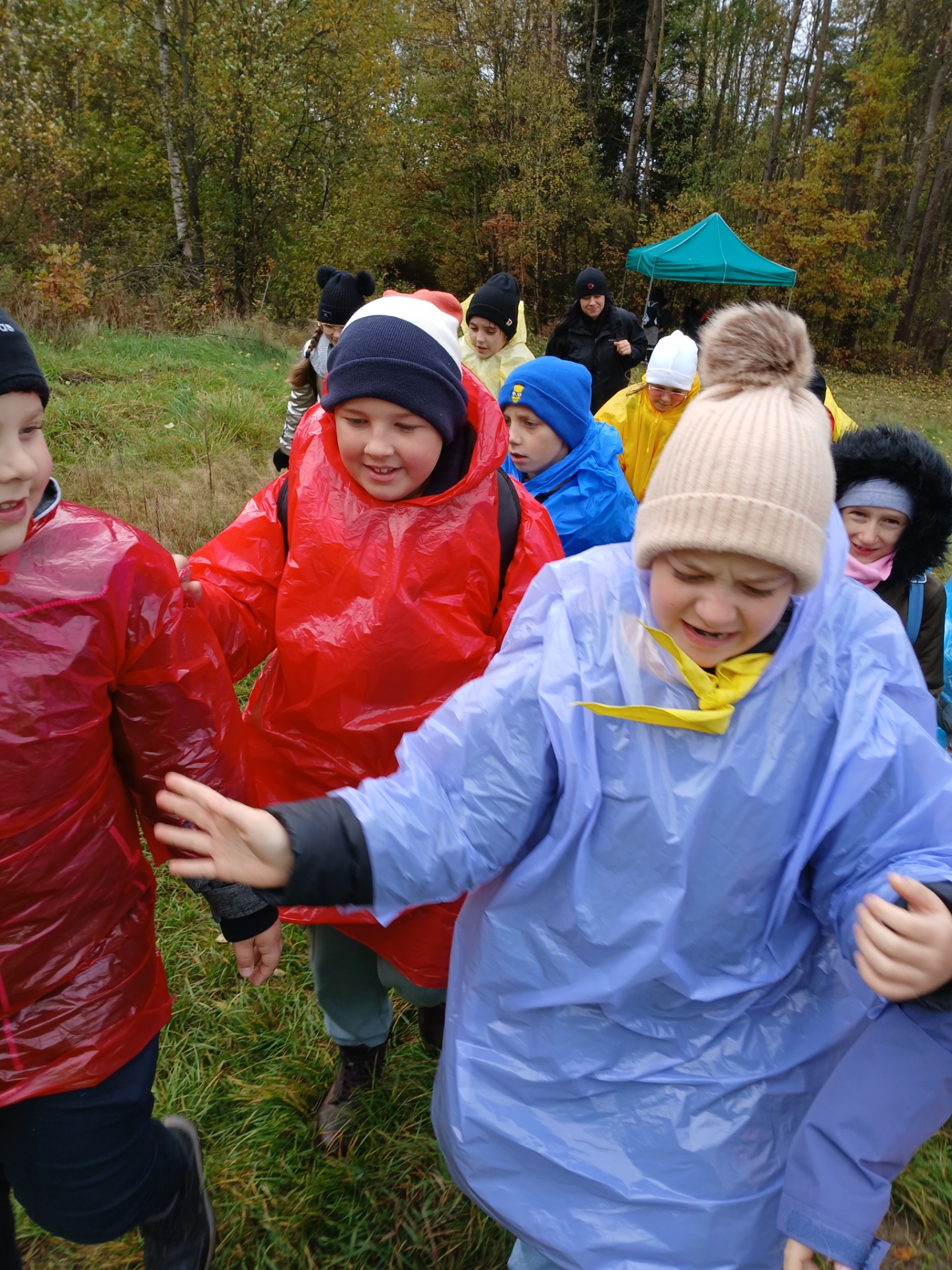 18 października 80. Gromada Zuchowa ,,Przyjaciele Puchatka” z naszej szkoły wyruszyła na Zuchowy Rajd Hufca Kielce - Powiat . W tym roku gościliśmy w Kostomłotach Drugich (gmina Miedziana Góra). Było nas ponad 200 osób. Zuchy wyruszyły na poszukiwanie pani Jesieni i mimo kapryśnej pogody poradziły sobie świetnie. Wykazały się dużą odwagą, sprytem i zaangażowaniem. Wykonały wszystkie zadania przygotowane przez Jesień: udzieliły pierwszej pomocy napotkanej harcerce (w tym zadaniu niezawodny był nasz zuch Bartek), układały z kasztanów wybrany kształt, przechodziły przez kłodę sprytnie jak wiewiórki, przesuwały się pod pajęczyną cicho jak jesienny wiatr, a na koniec wykonały portret pani Jesieni. Na mecie czekały na wszystkich kiełbaski, dyplomy i upominki. Było bardzo miło i wesoło. Już nie możemy doczekać się kolejnej wędrówki.