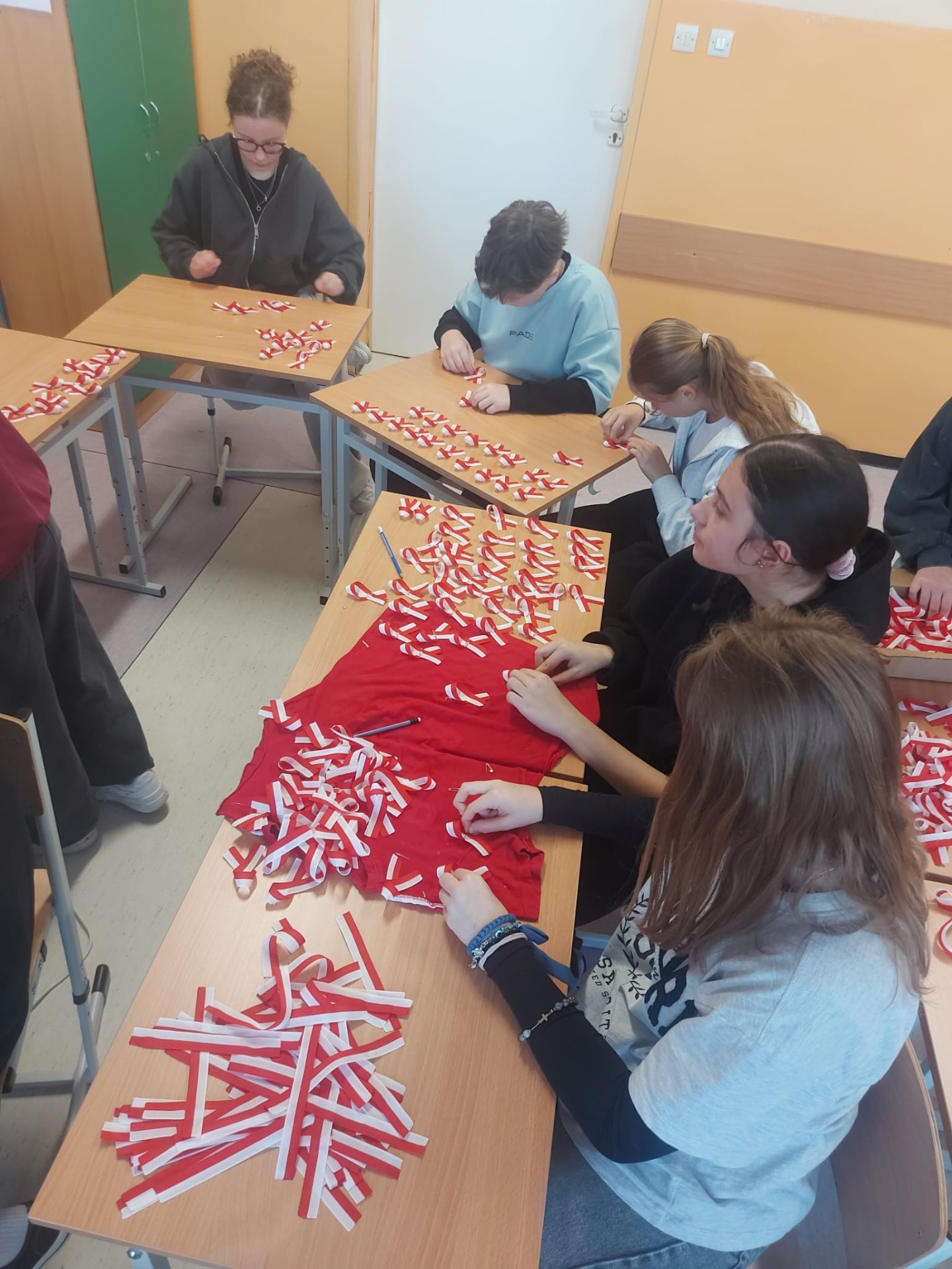 Z okazji Narodowego Święta Niepodległości nasza społeczność szkolna z dumą uczciła rocznicę odzyskania przez Polskę wolności w 1918 roku. Aby podkreślić nasze przywiązanie do historii, kultury i tradycji, grupa szkolnych wolontariuszy przygotowała symboliczne kotyliony dla nauczycieli oraz uczniów.