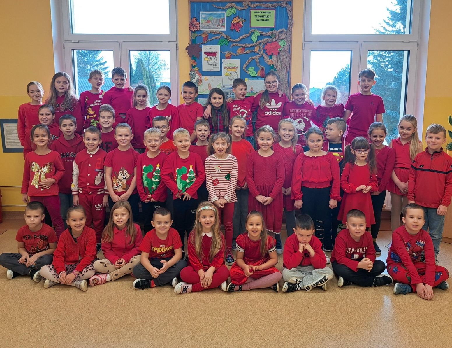 „Dzień na czerwono" w ramach akcji przeciwdziałania przemocy wobec dzieci. Uczniowie z filii Suchowoli ubrani byli na czerwono.