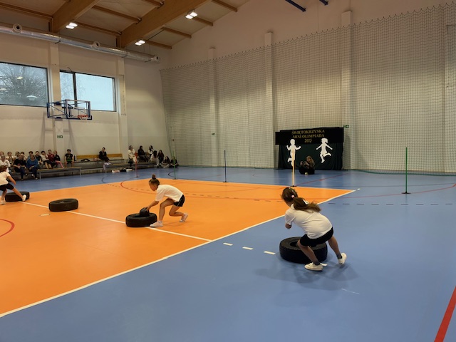 25 listopada przeprowadzono eliminacje szkolne do Świętokrzyskiej Miniolimpiady organizowanej przez Wojewódzki Szkolny Związek Sportowy w Kielcach. W imprezie sportowej udział wzięły wszystkie klasy edukacji wczesnoszkolnej, tj.15 klas I-III, w sumie 180 zawodników. Sportowcy rywalizowali ze sobą w turnieju gier i zabaw w 4 konkurencjach: zwinnościowej, szybkościowej i skocznościowej. Głównym celem zawodów było wyłonienie reprezentacji naszej szkoły. Ważnym elementem była dobra zabawa i rywalizacja sportowa, która uczy akceptacji, szacunku dla zasad, godzenia się z porażką i cieszenia się z zasłużonej wygranej.