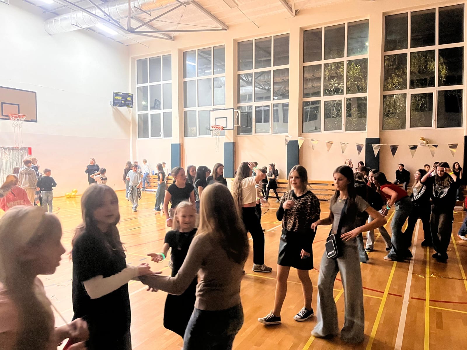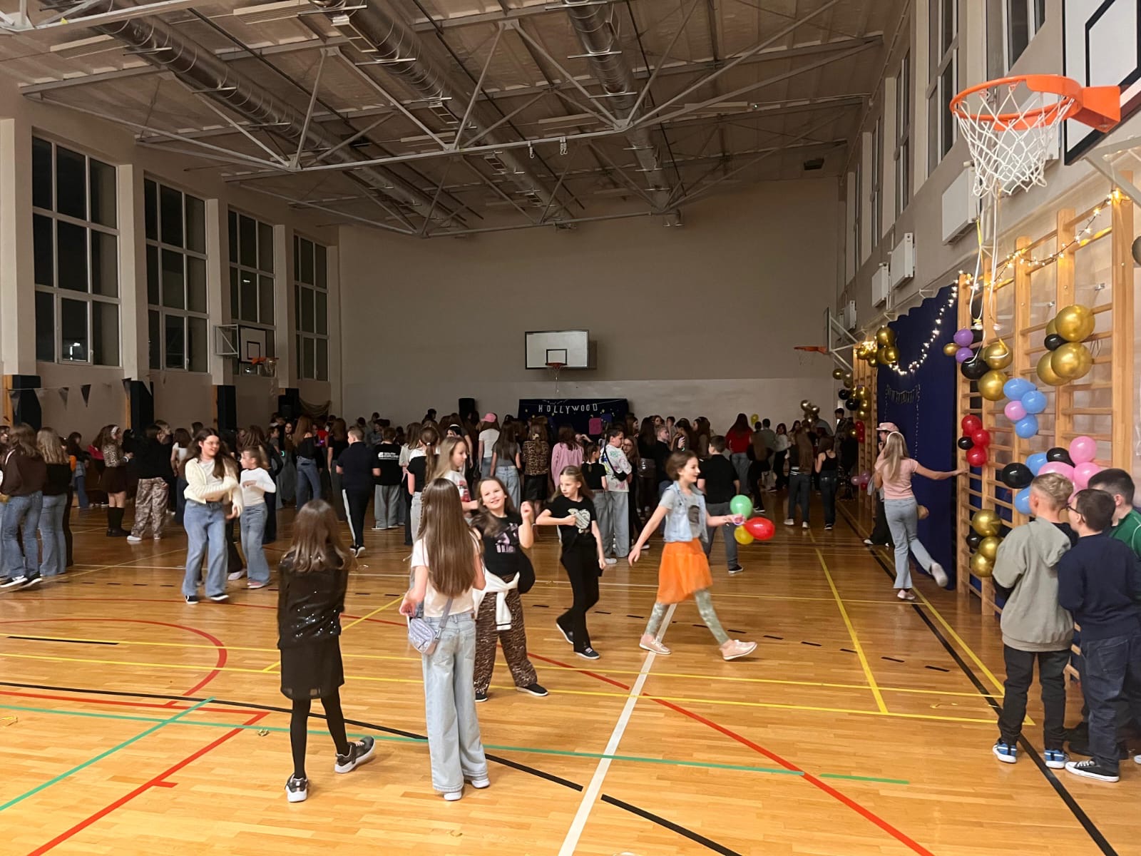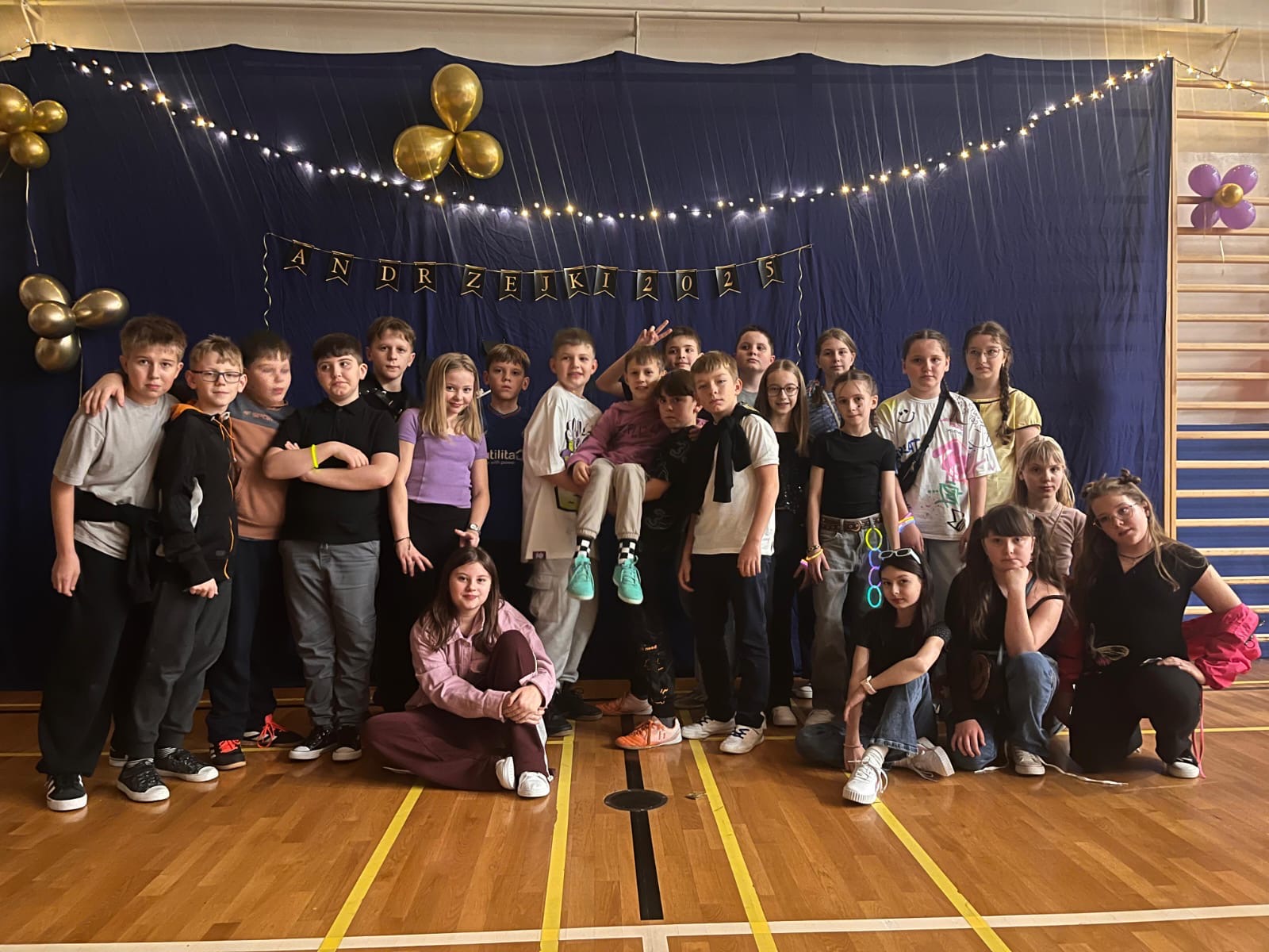 W minioną środę w naszej szkole odbyła się wyjątkowa dyskoteka andrzejkowa pod hasłem „Lata 2000”. Sala gimnastyczna zamieniła się w kolorową przestrzeń inspirowaną muzyką i modą tamtego okresu . Uczniowie przyszli przebrani w stylizacje nawiązujące do początku XXI wieku – neonowe kolory, błyszczące dodatki, opaski, niskie spodnie oraz charakterystyczne fryzury stworzyły niepowtarzalny klimat . Podczas zabawy nie zabrakło hitów, które porwały wszystkich do tańca. Wydarzenie przebiegło w radosnej atmosferze, a uczniowie świetnie się bawili, odkrywając, jak wyglądały trendy sprzed dwóch dekad . Dyskoteka okazała się strzałem w dziesiątkę! Dekoracje wprowadziły wszystkich w wyjątkowy, magiczny nastrój . To była doskonała okazja do integracji i wspólnej zabawy całej szkolnej społeczności .