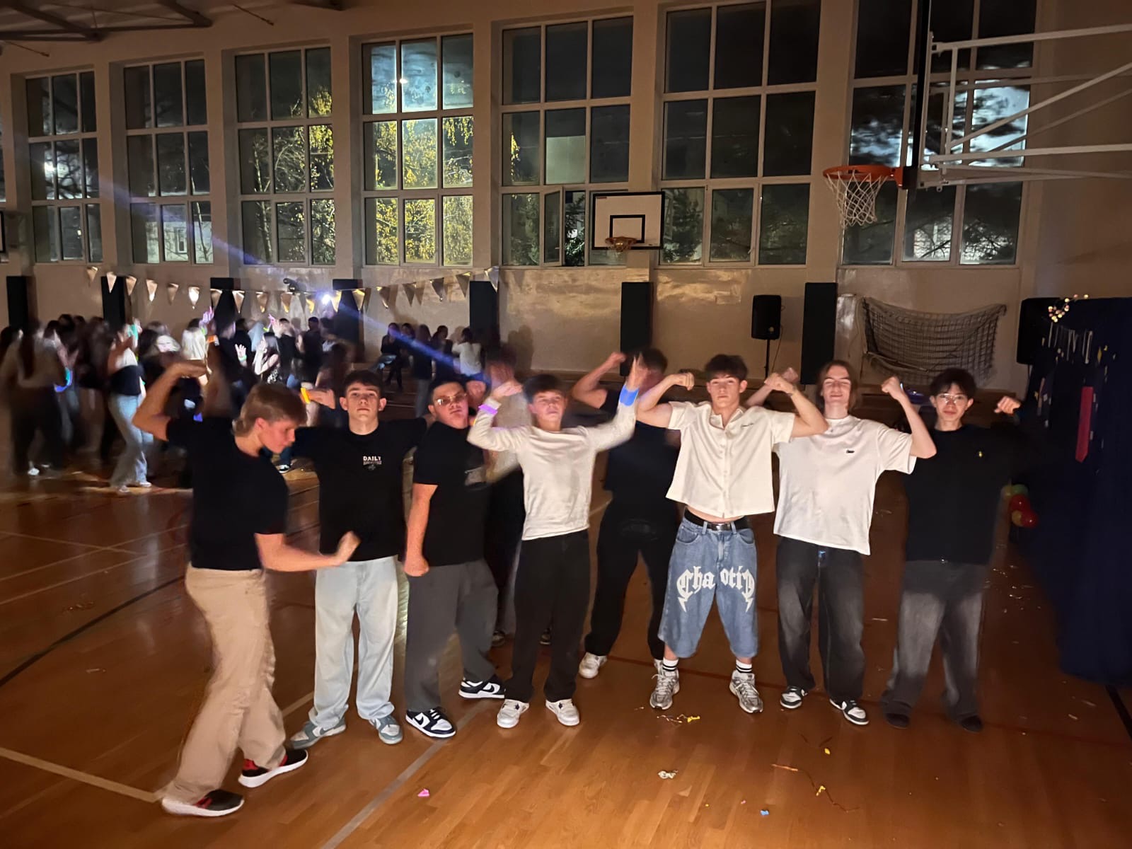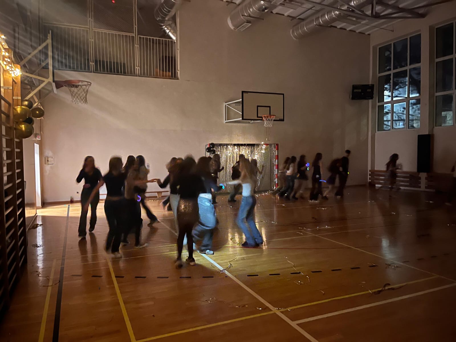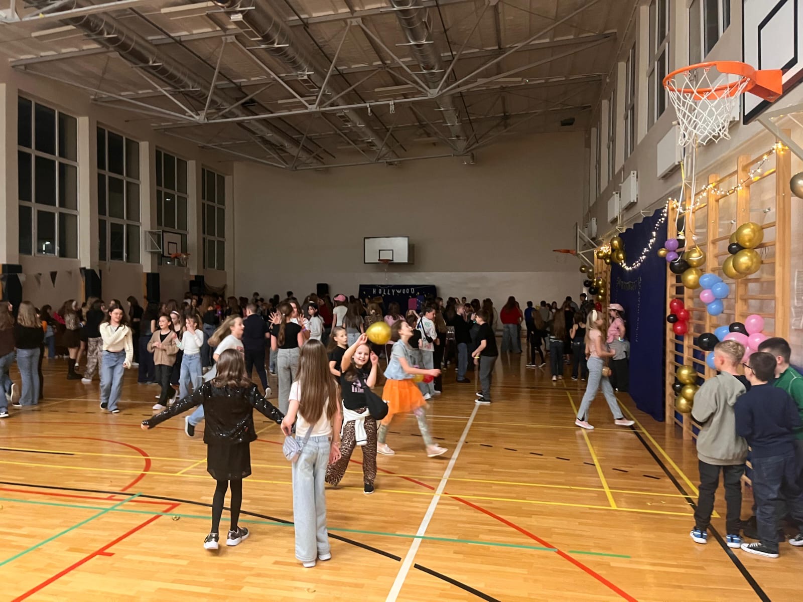 W minioną środę w naszej szkole odbyła się wyjątkowa dyskoteka andrzejkowa pod hasłem „Lata 2000”. Sala gimnastyczna zamieniła się w kolorową przestrzeń inspirowaną muzyką i modą tamtego okresu . Uczniowie przyszli przebrani w stylizacje nawiązujące do początku XXI wieku – neonowe kolory, błyszczące dodatki, opaski, niskie spodnie oraz charakterystyczne fryzury stworzyły niepowtarzalny klimat . Podczas zabawy nie zabrakło hitów, które porwały wszystkich do tańca. Wydarzenie przebiegło w radosnej atmosferze, a uczniowie świetnie się bawili, odkrywając, jak wyglądały trendy sprzed dwóch dekad . Dyskoteka okazała się strzałem w dziesiątkę! Dekoracje wprowadziły wszystkich w wyjątkowy, magiczny nastrój . To była doskonała okazja do integracji i wspólnej zabawy całej szkolnej społeczności .