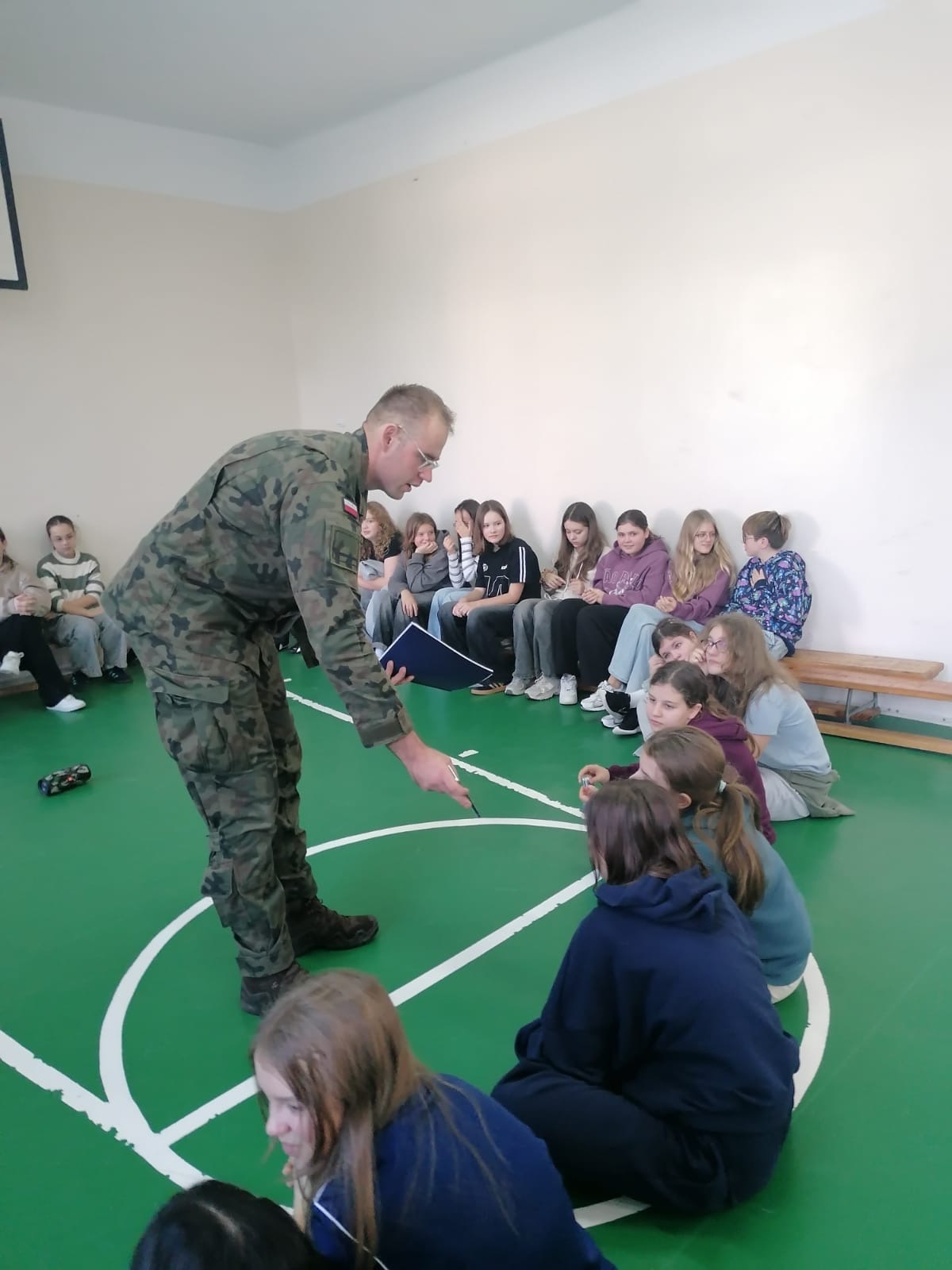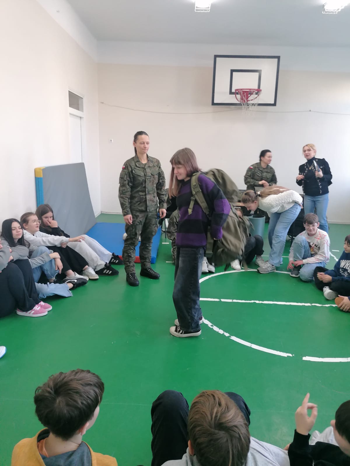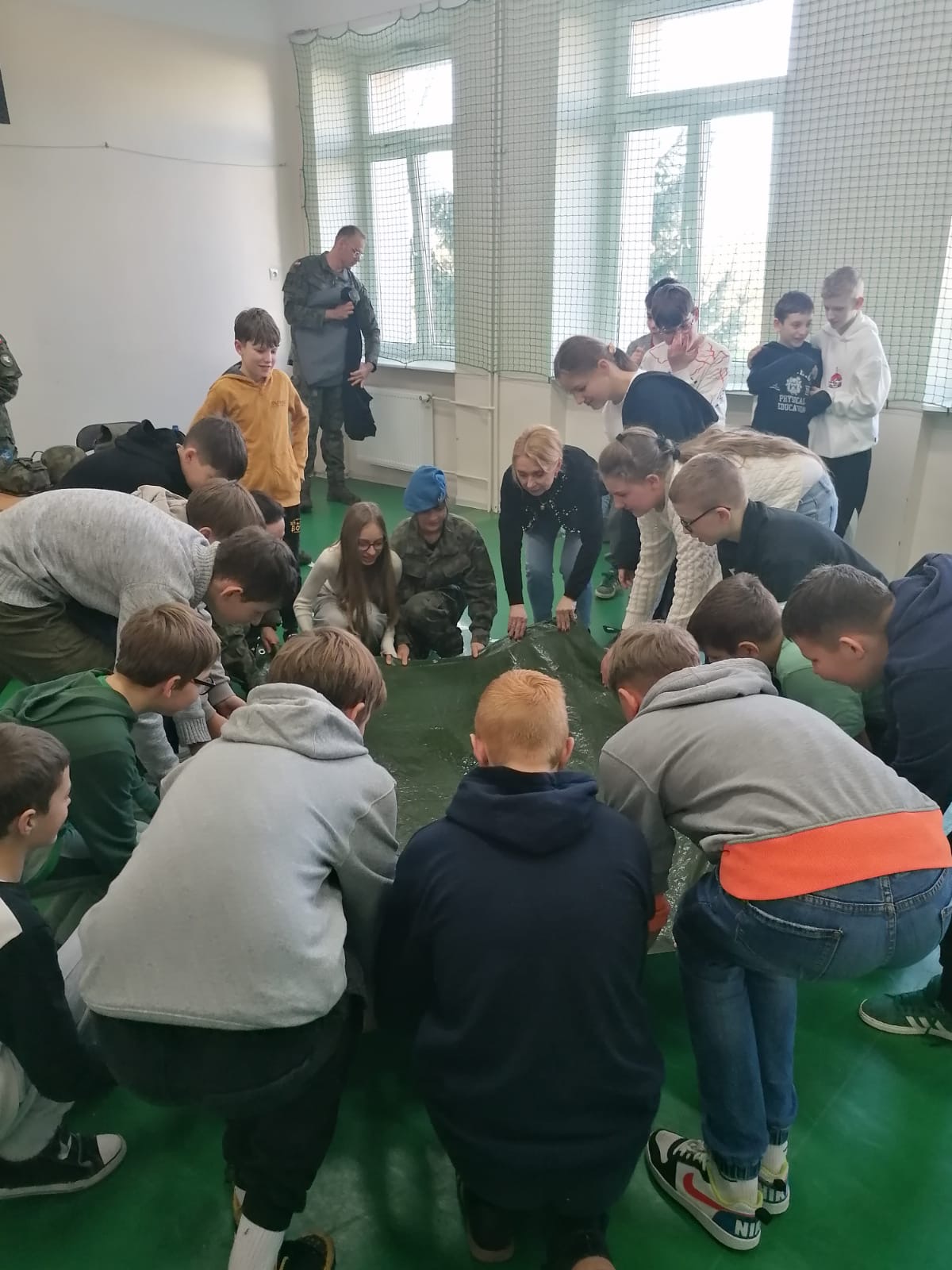 3 grudnia 2025 r. w naszej szkole odbyły się specjalne zajęcia dla uczniów klas 6, prowadzone przez Centrum Przygotowań do Misji Zagranicznych w Kielcach. "Edukacja z Wojskiem" to program przygotowany i realizowany we współdziałaniu Ministerstwa Edukacji Narodowej i Ministerstwa Obrony Narodowej. Szkolenie łączyło teorię i praktykę. Uczniowie zapoznali się m.in. z zasadami alarmowania, sposobami szukania i wzywania pomocy. Uzyskali informacje, jak reagować w sytuacjach kryzysowych, związanych z udzielaniem pierwszej pomocy, cyberprzemocą i cyberprzestępstwem. Mieli okazję nie tylko zdobyć teoretyczną wiedzę, ale wzięli też udział w ćwiczeniach praktycznych. Dzięki takiej formie spotkania z żołnierzami przekonali się, jak ważne jest szybkie i skuteczne działanie w sytuacjach różnych zagrożeń. Dziękujemy za możliwość udziału w takim przedsięwzięciu.