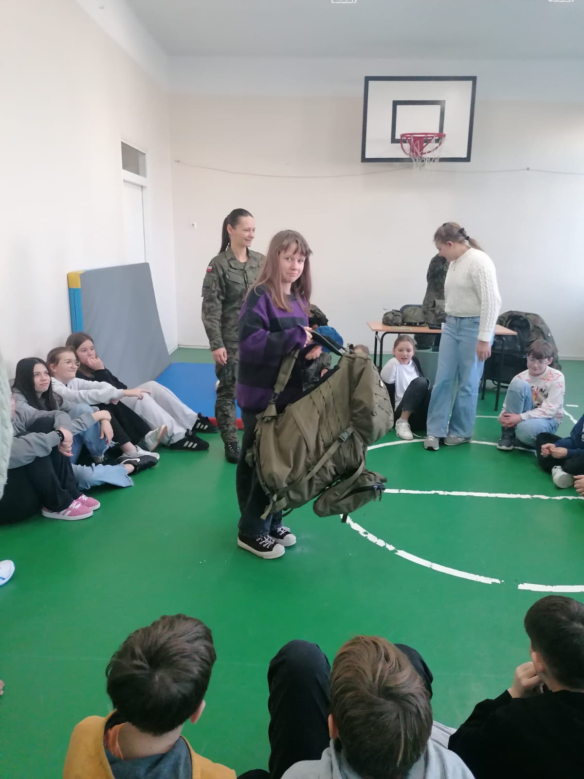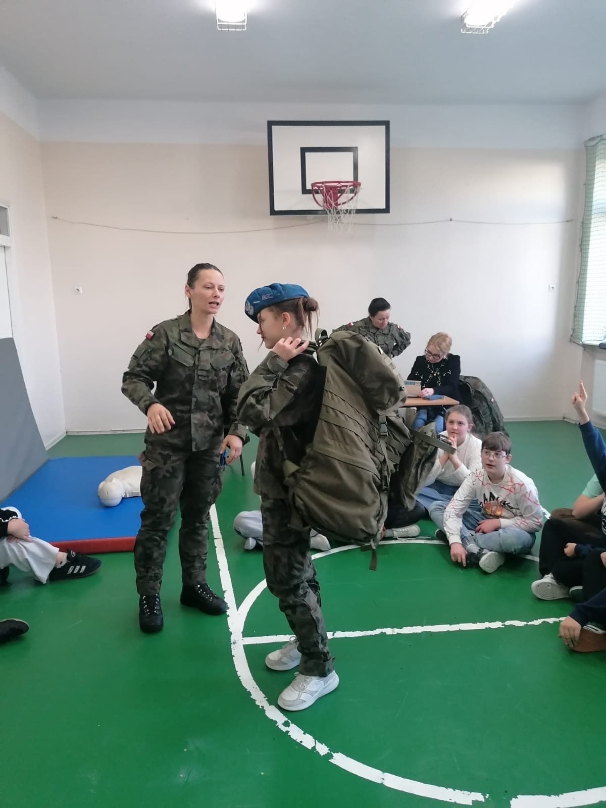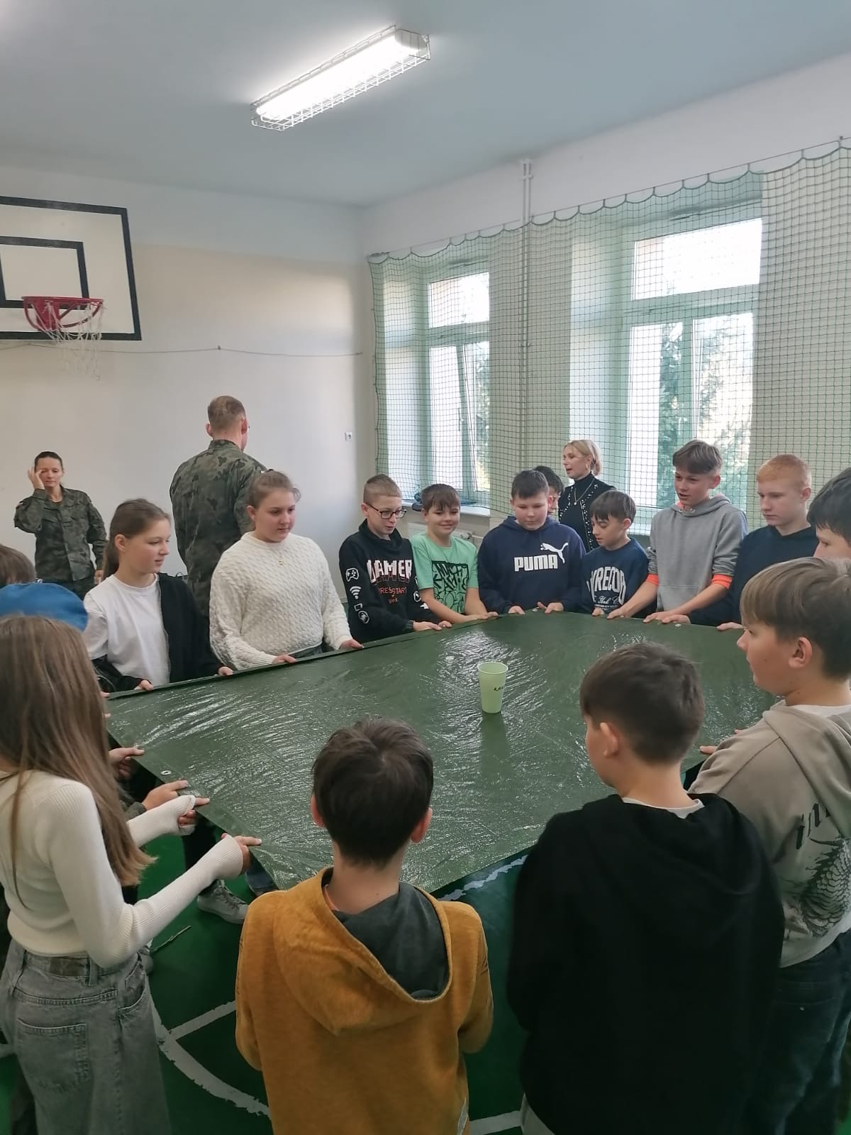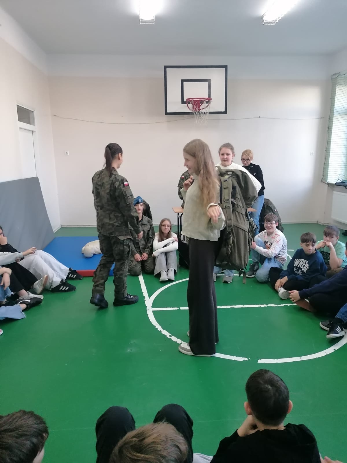 3 grudnia 2025 r. w naszej szkole odbyły się specjalne zajęcia dla uczniów klas 6, prowadzone przez Centrum Przygotowań do Misji Zagranicznych w Kielcach. "Edukacja z Wojskiem" to program przygotowany i realizowany we współdziałaniu Ministerstwa Edukacji Narodowej i Ministerstwa Obrony Narodowej. Szkolenie łączyło teorię i praktykę. Uczniowie zapoznali się m.in. z zasadami alarmowania, sposobami szukania i wzywania pomocy. Uzyskali informacje, jak reagować w sytuacjach kryzysowych, związanych z udzielaniem pierwszej pomocy, cyberprzemocą i cyberprzestępstwem. Mieli okazję nie tylko zdobyć teoretyczną wiedzę, ale wzięli też udział w ćwiczeniach praktycznych. Dzięki takiej formie spotkania z żołnierzami przekonali się, jak ważne jest szybkie i skuteczne działanie w sytuacjach różnych zagrożeń. Dziękujemy za możliwość udziału w takim przedsięwzięciu.