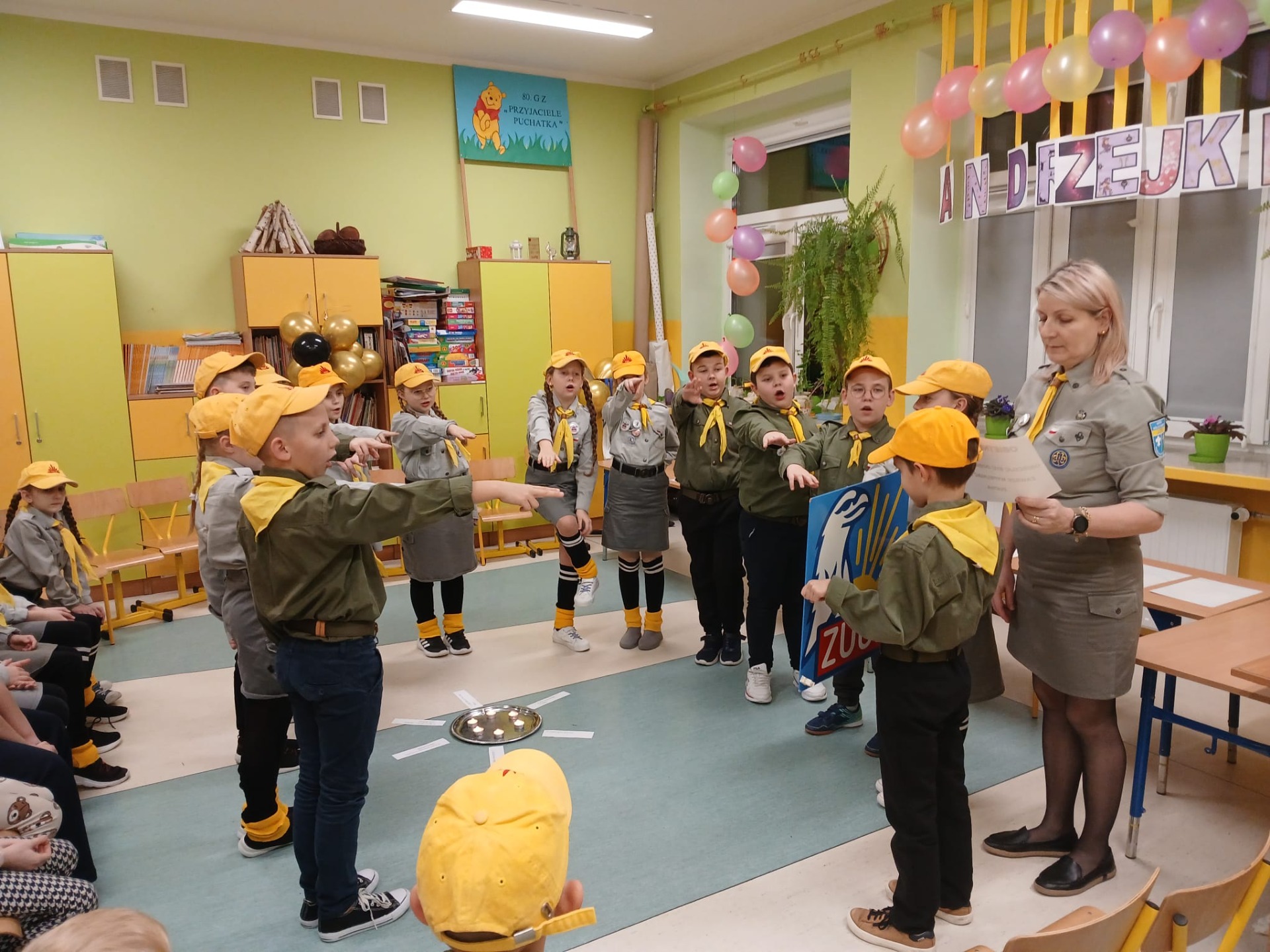 Andrzejki obchodzone są zwykle w wigilię św. Andrzeja czyli 29 listopada. Mogą one być wspaniałą okazją do dobrej zabawy, a jednocześnie źródłem szacunku dla tradycji i obrzędów ludowych. Dzieci często zastanawiają się, co je w życiu spotka, planują i marzą. Z niecierpliwością oczekują na ten niezwykły, inny niż wszystkie - dzień tajemniczych wróżb i czarów, połączonych z zabawą, tańcem i słodkim poczęstunkiem. Tak też było 28 listopada na andrzejkach zuchowych zorganizowanych przez 80. Gromadę Zuchową Przyjaciele Puchatka. Ich uczestnicy brali udział we wróżbach andrzejkowych, pląsach i zabawach ruchowych. Podczas całego, magicznego wieczoru wszystkie dzieci wyśmienicie się bawiły. Wróżby rokowały zuchom dobrą przyszłość, szczęście, wielu dobrych przyjaciół i oczywiście sukcesy w szkole. Zabawa przebiegała w atmosferze tajemniczości i magii. Zuchy chciały poznać i wyczytać z kart całą swoją przyszłość. Było to udane spotkanie integracyjne, z którego wszyscy wrócili zadowoleni. Czuwaj!