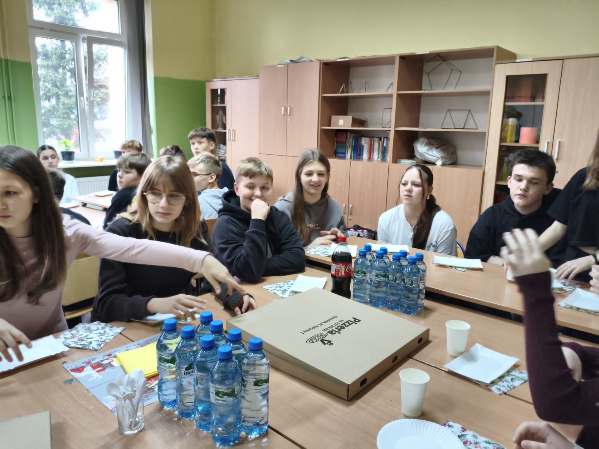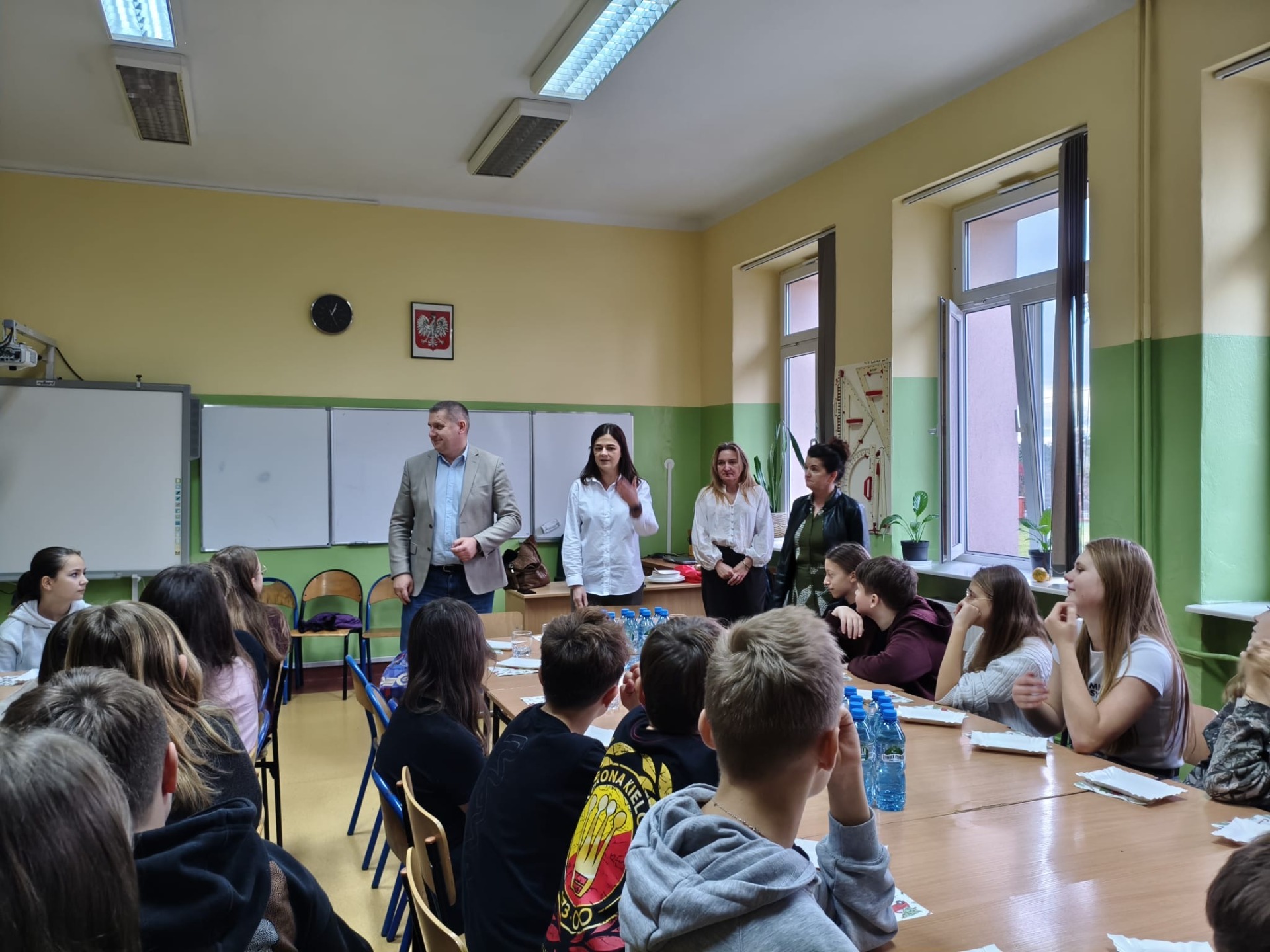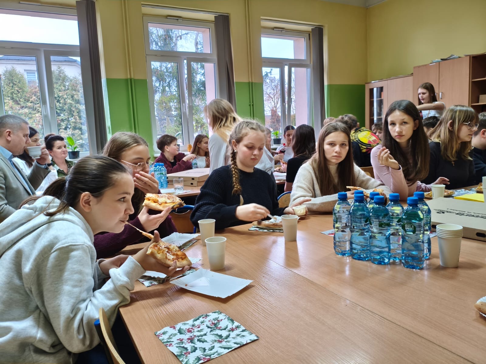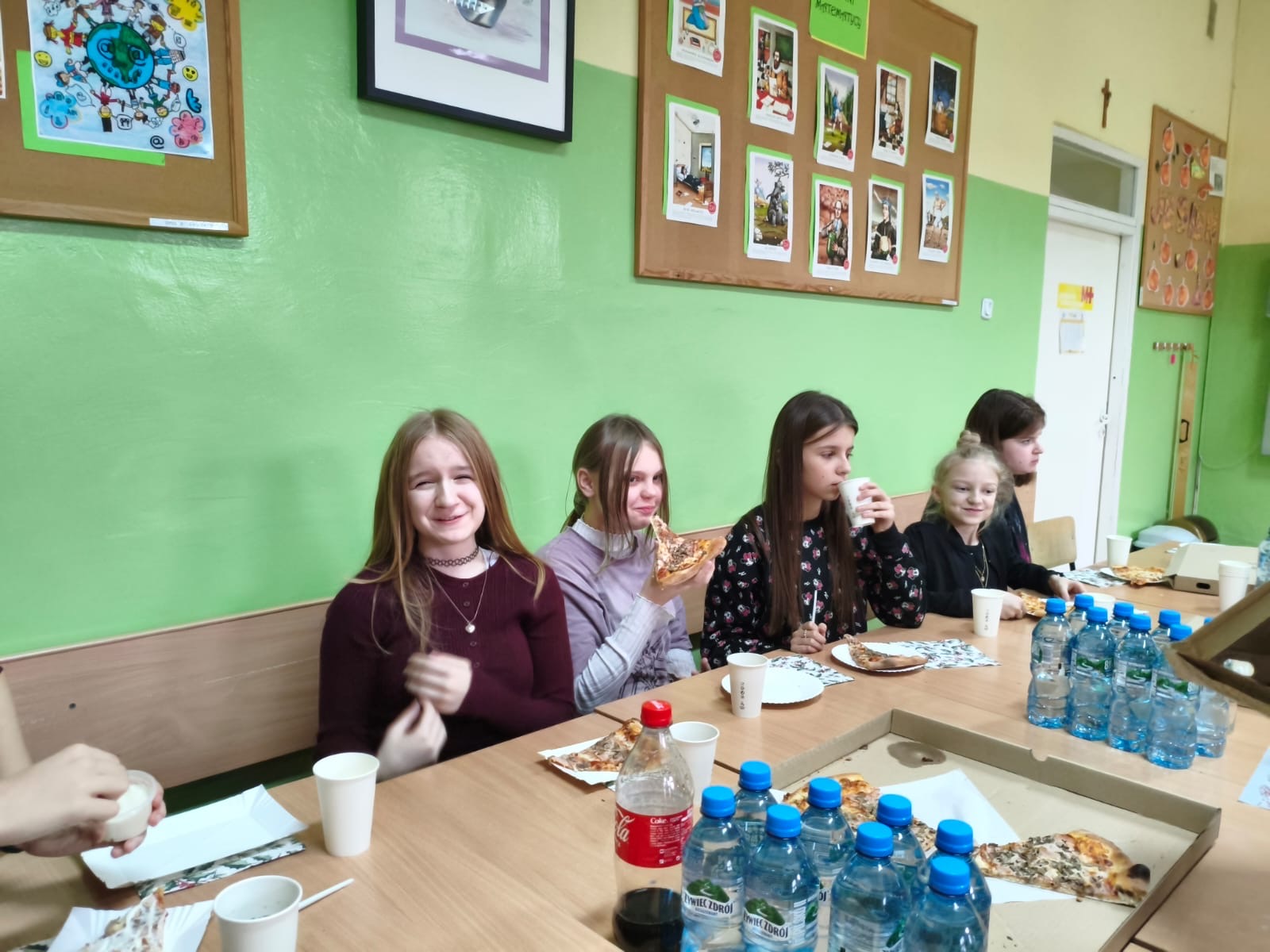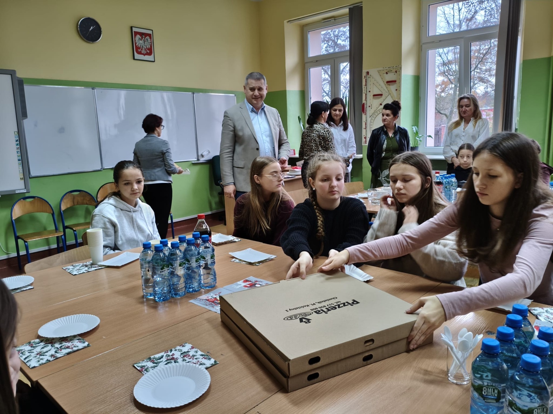 W spotkaniu uczestniczyli Pan Burmistrz Paweł Wójcik oraz Dyrekcja naszej szkoły, od których otrzymaliśmy życzenia, słowa uznania dla naszych działań, a także miły poczęstunek. Podczas wspólnej rozmowy Goście wysłuchali naszych relacji z przeprowadzonych akcji i podzielili się wieloma cennymi wskazówkami na przyszłość.