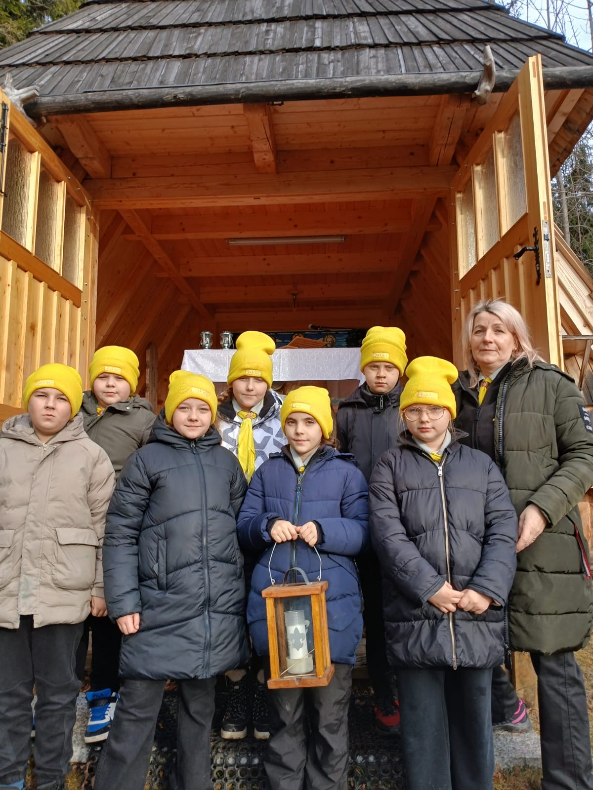 5 grudnia 2025 r. siedmioro zuchów z 80. GZ Przyjaciele Puchatka wraz z drużynową Beatą Todorowską wyruszyło do Zakopanego po Betlejemskie Światło Pokoju. Tegoroczne przesłanie brzmi: ,,Pielęgnuj dobro w sobie” – przypominając, że dobro w świecie zaczyna się od dobra w człowieku. W piątek po dotarciu do Zakopanego i zakwaterowaniu zuchy zostały zarejestrowane w biurze zlotowym i odebrały pakiety startowe. W sobotę po śniadaniu uczestniczyły w grze miejskiej, zwiedzały Zakopane, a następnie na Dolnej Równi Krupowej w miasteczku zlotowym uczestniczyły w warsztatach, pląsach, tańcach. Atrakcją była również fotobudka, a także konkursy i dmuchane atrakcje. Był też moment na odpoczynek i zabawę na śniegu. Zuchy doskonale spisały się w zadaniach przedzlotowych. Wykonały tyle bombek, ile liczył patrol. Bombki zawiesiły w miasteczku zlotowym, gdzie stały się częścią wspólnej dekoracji. Dzieci odnalazły również kartki świąteczne, które wysłały do harcerskiej poczty betlejemskiej. W niedzielę po śniadaniu i wykwaterowaniu udały się w góry do Schroniska Głodówka, gdzie po mszy świętej wraz z innymi zuchami i harcerzami odebrały Betlejemskie Światło Pokoju. Światło zabrały ze sobą i przekażą je instytucjom i mieszkańcom Chmielnika na mszy świętej w kościele parafialnym 21 grudnia o godzinie 8.30. Wrażenia i atrakcje pozostaną na długo w ich pamięci.